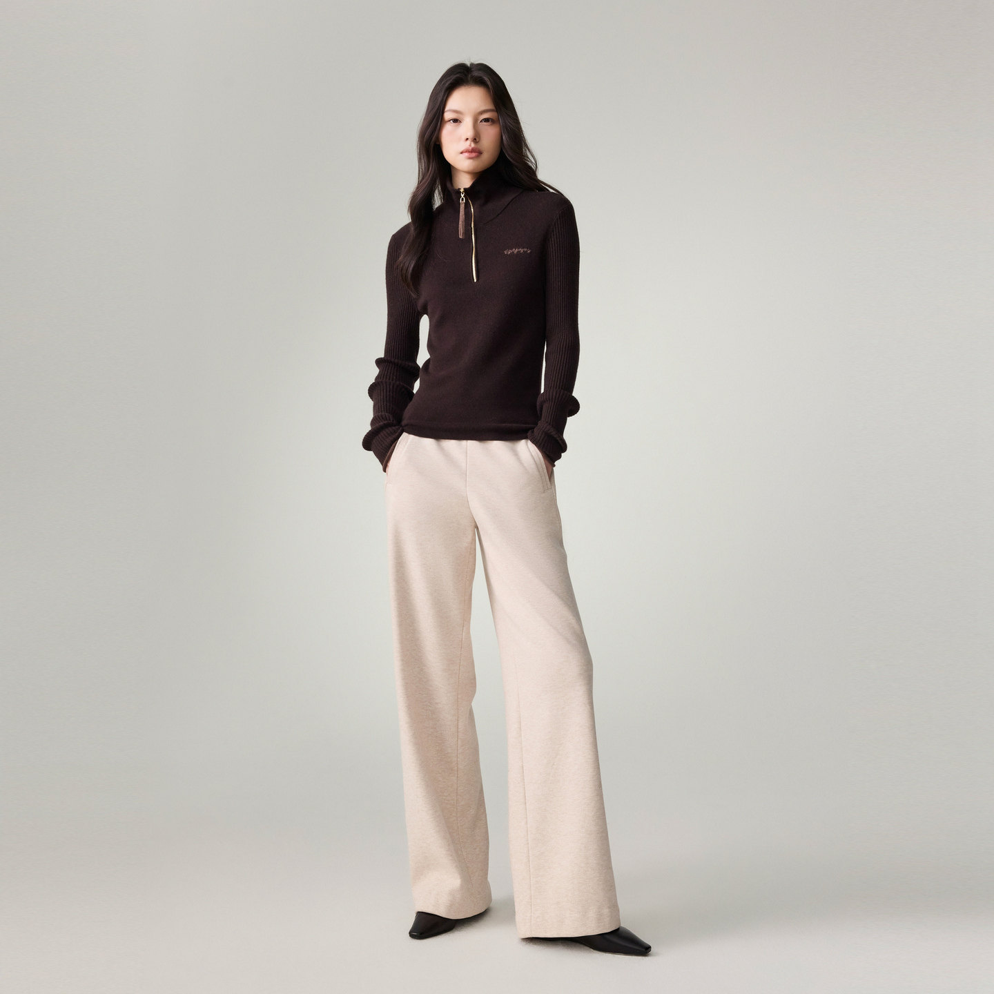 弹力加绒保暖针织直筒糯米裤 女装 EP雅莹25秋冬新款 6448A 可机洗