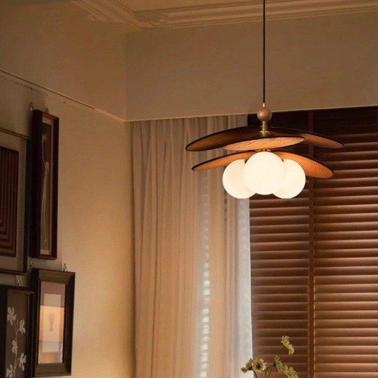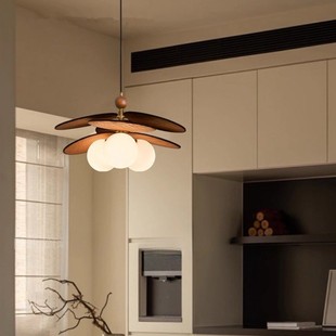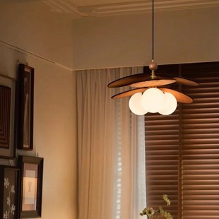 侘寂风餐厅摇臂吊灯 复古胡桃色日式 法式 中古风卧室护眼吸顶灯美式