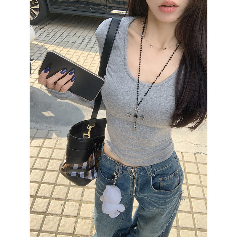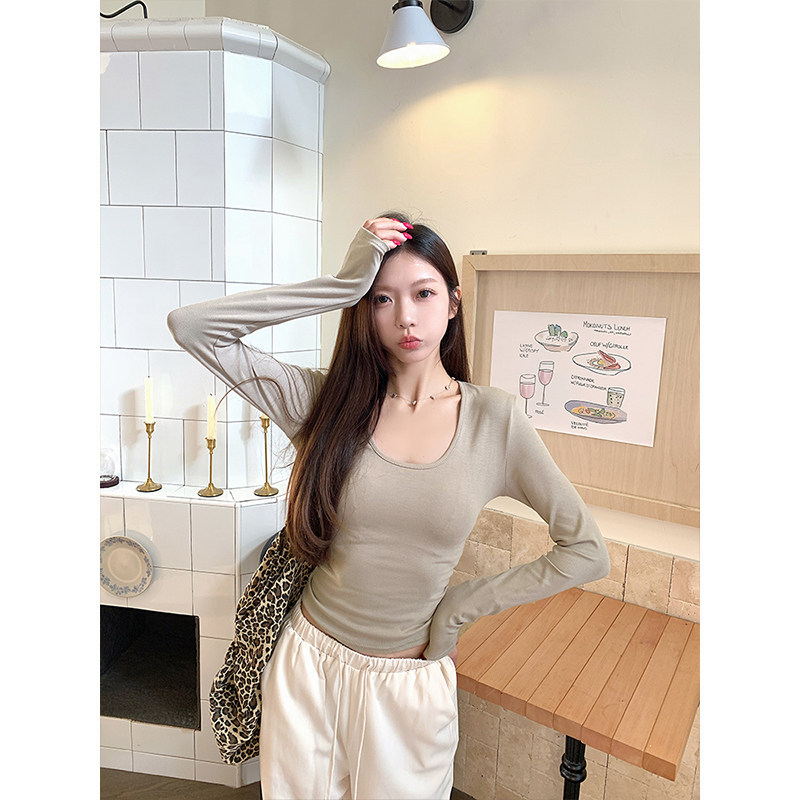 内搭修身 新款 显瘦打底上衣 t恤秋季 MosesQueen魔西女王白色U领长袖