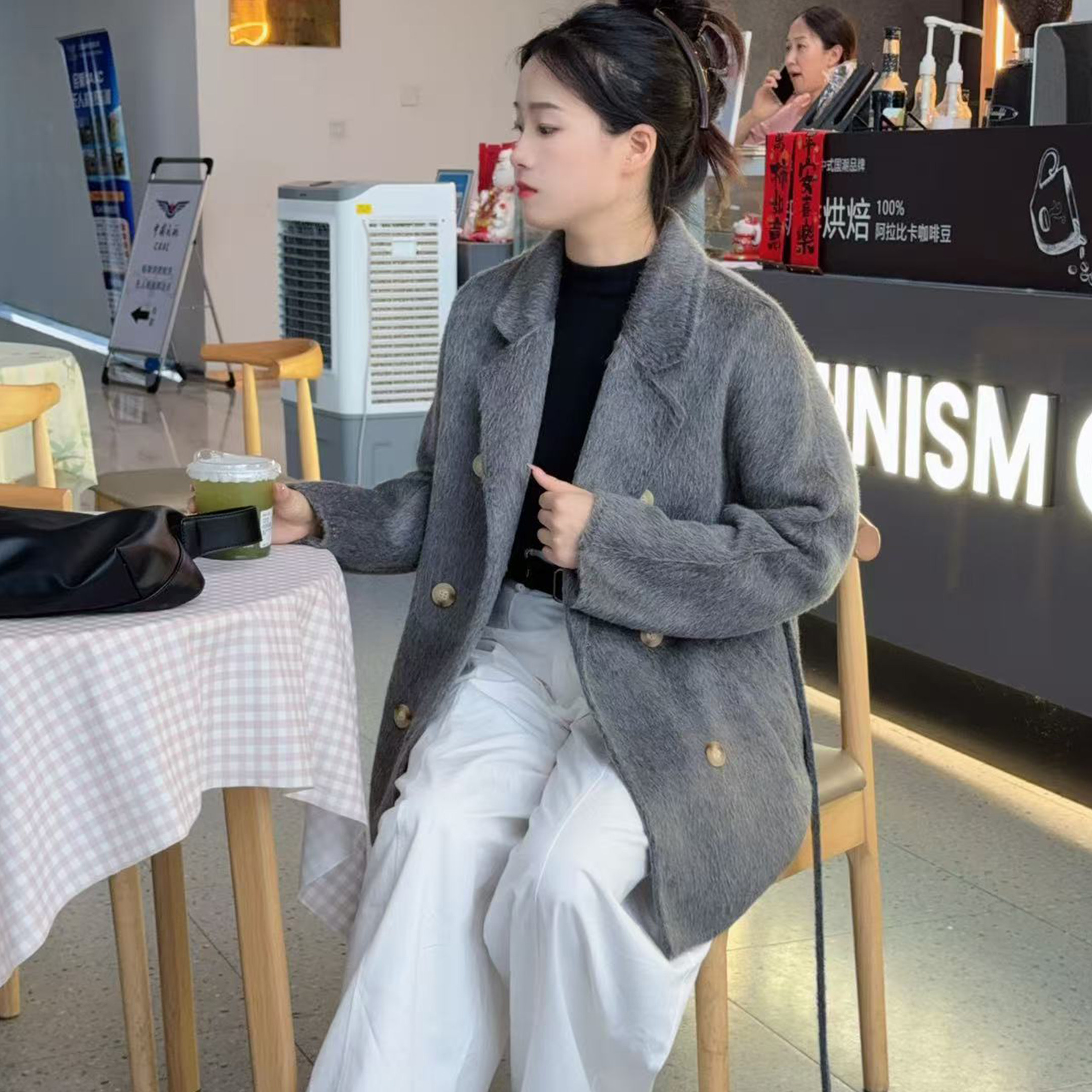 苏丽羊驼高定101801爆款 秋冬毛呢外套 大衣双排扣女短款