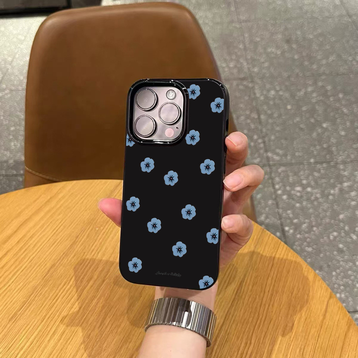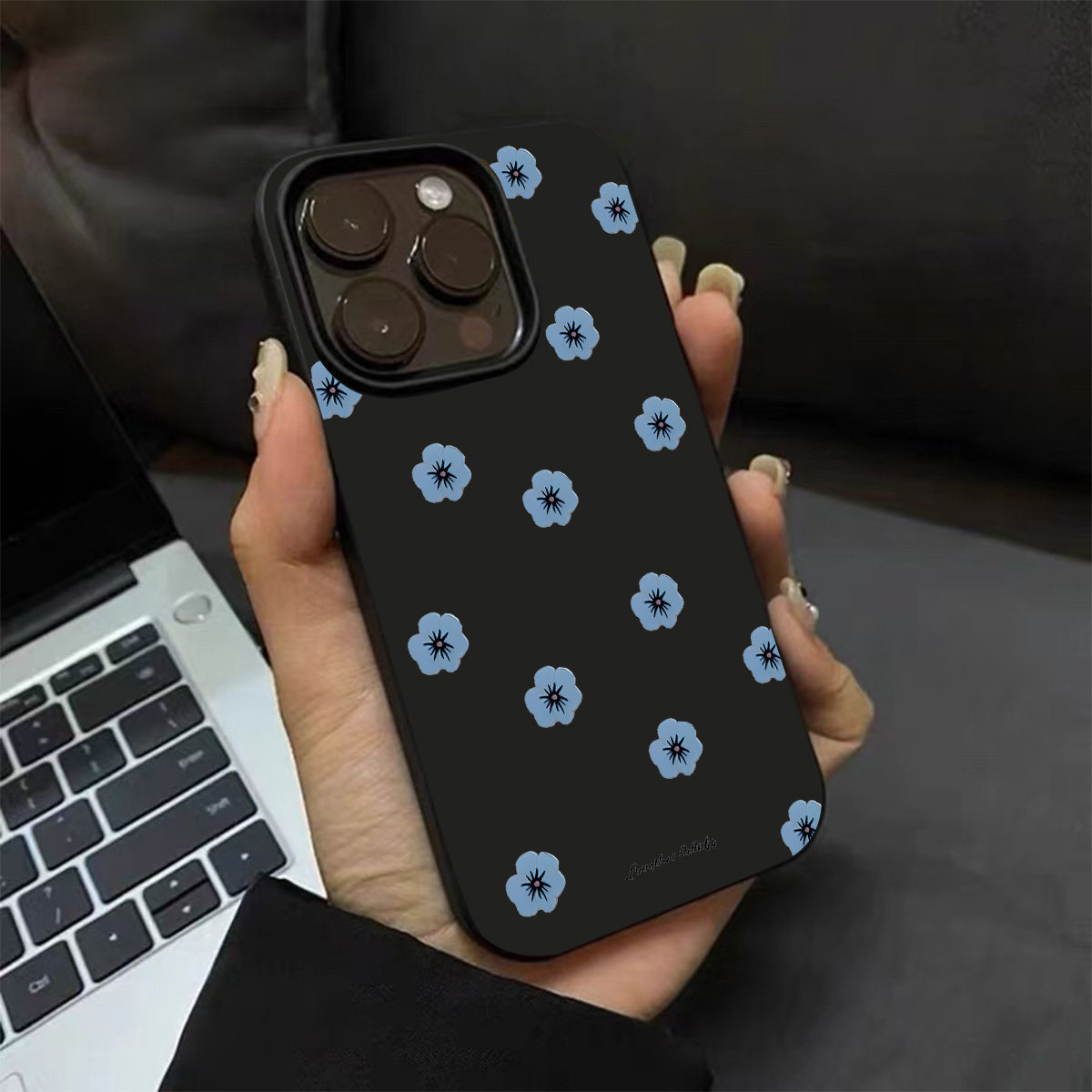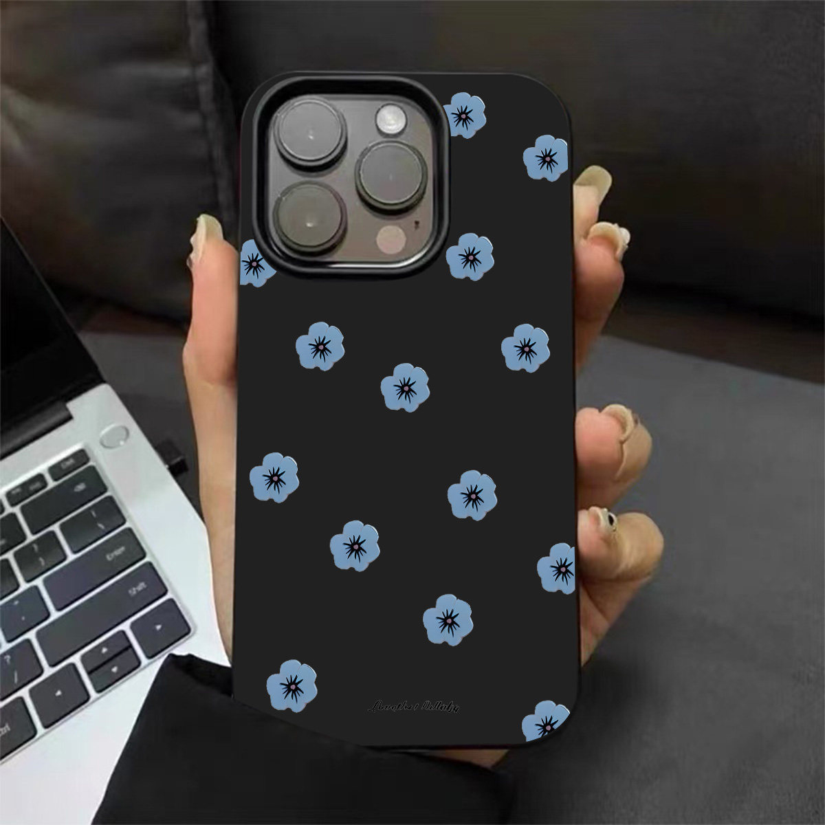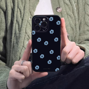 ins春日小众高级感蓝色小花手机壳适用苹果17promax新款 iPhone15pro亮黑色14磨砂13硅胶12女11超薄16防摔软壳
