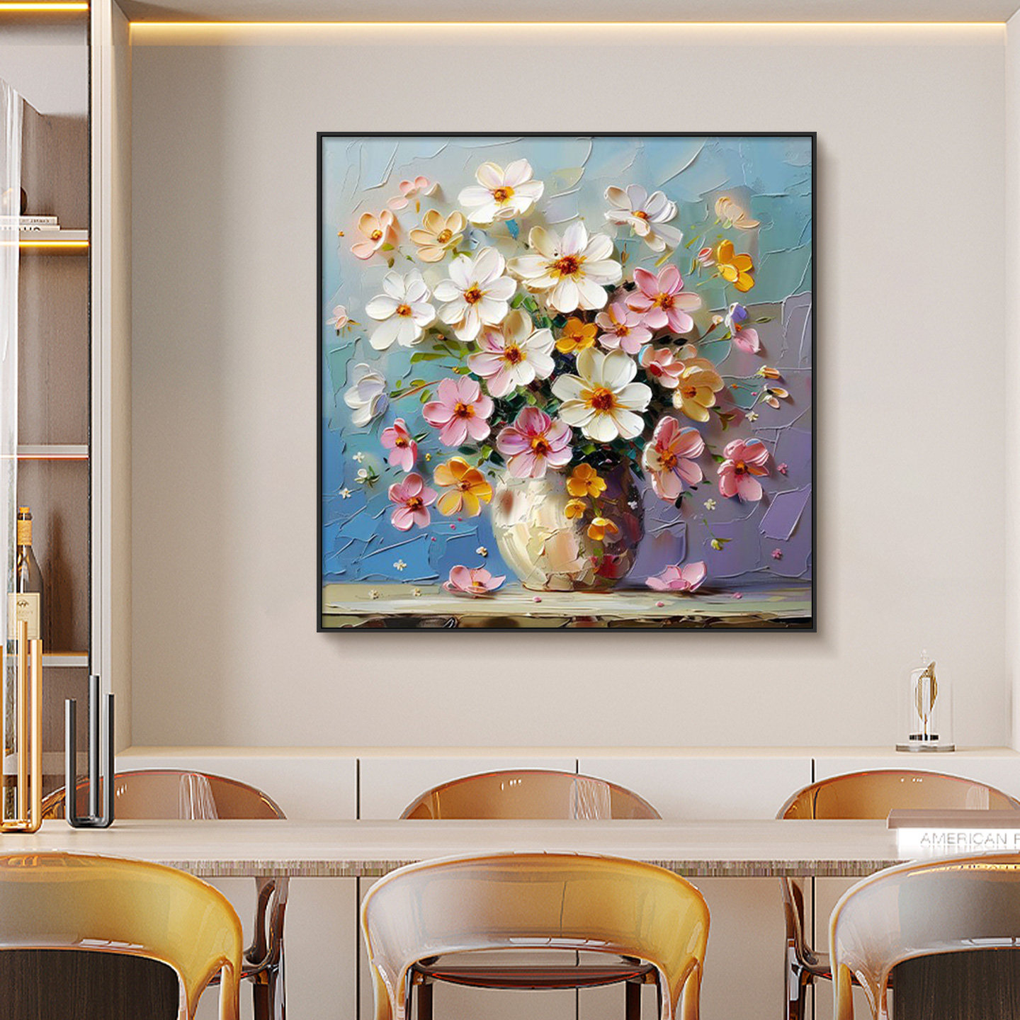 餐厅装 饰画轻奢高级感挂画饭厅背景墙简约现代手绘油画花2026新款