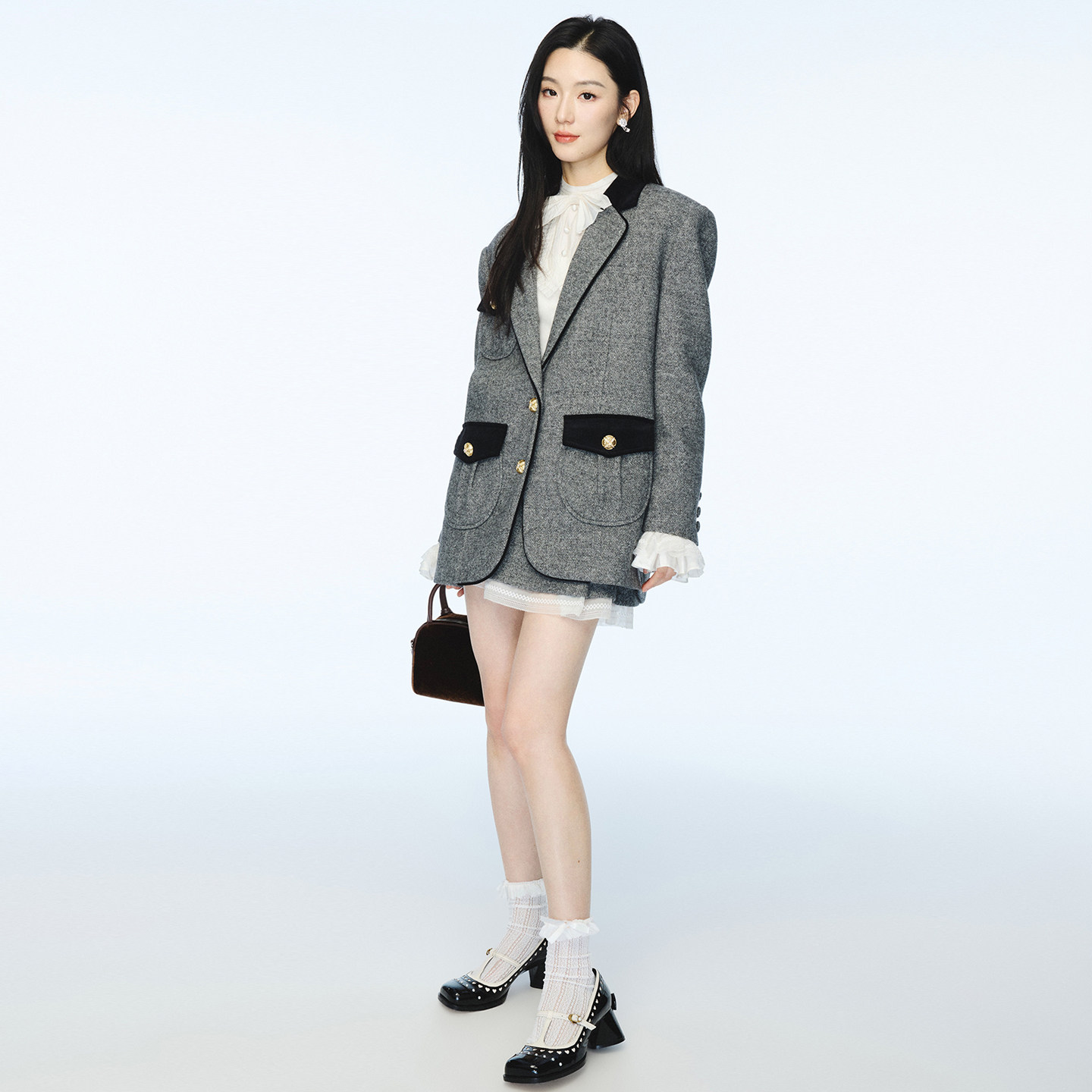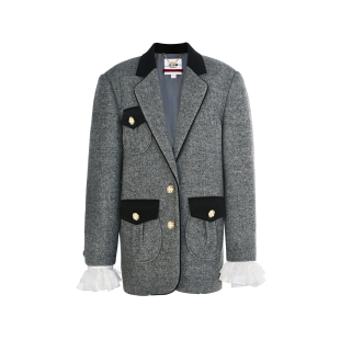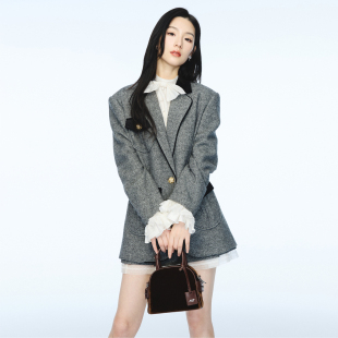摩登毛呢千金风撞色西装 套装 外套上衣女 新款 lefame拉飞姆春季