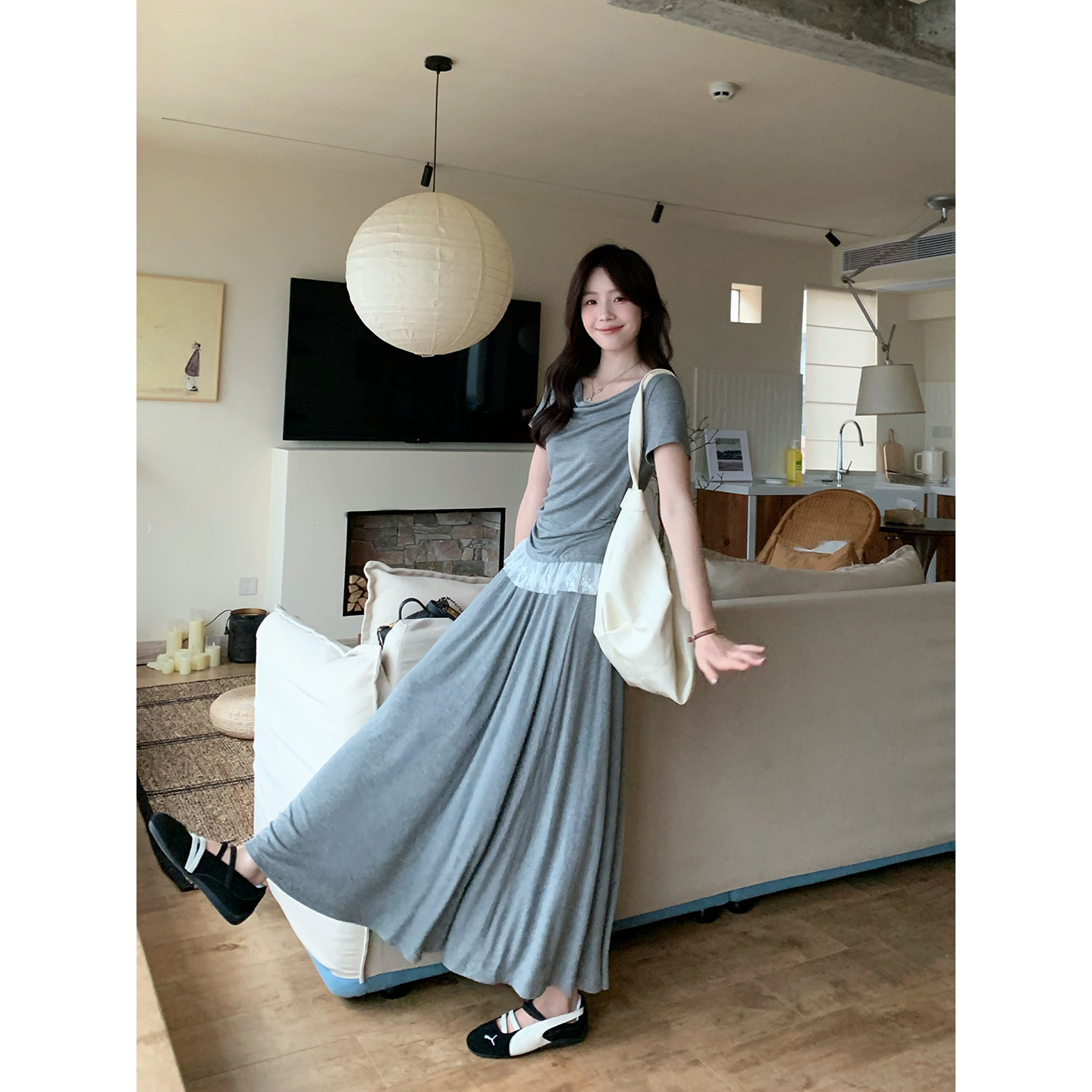 半裙套装 韩系高智感软糯舒适斜肩蕾丝上衣 亦菲下凡 Even一雯
