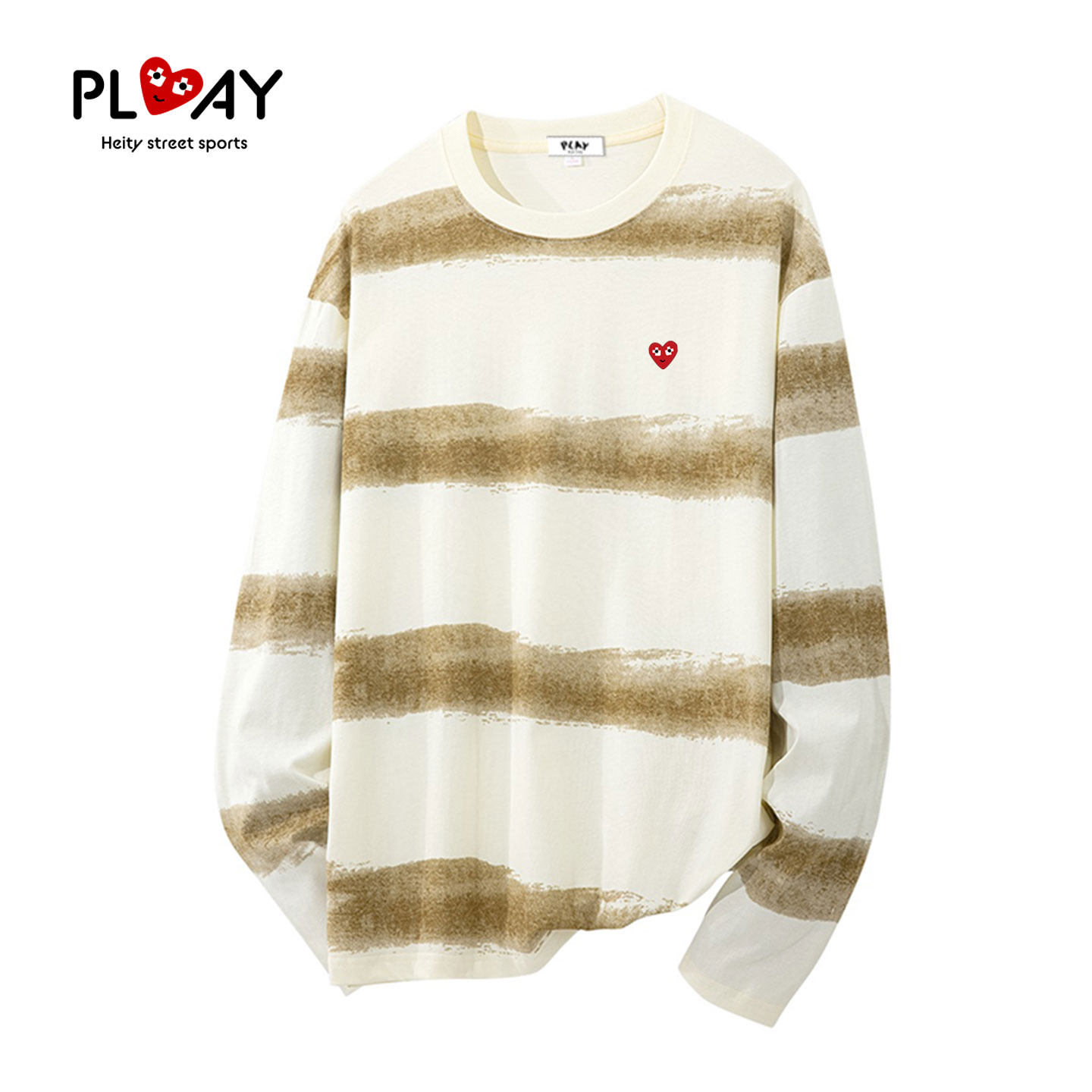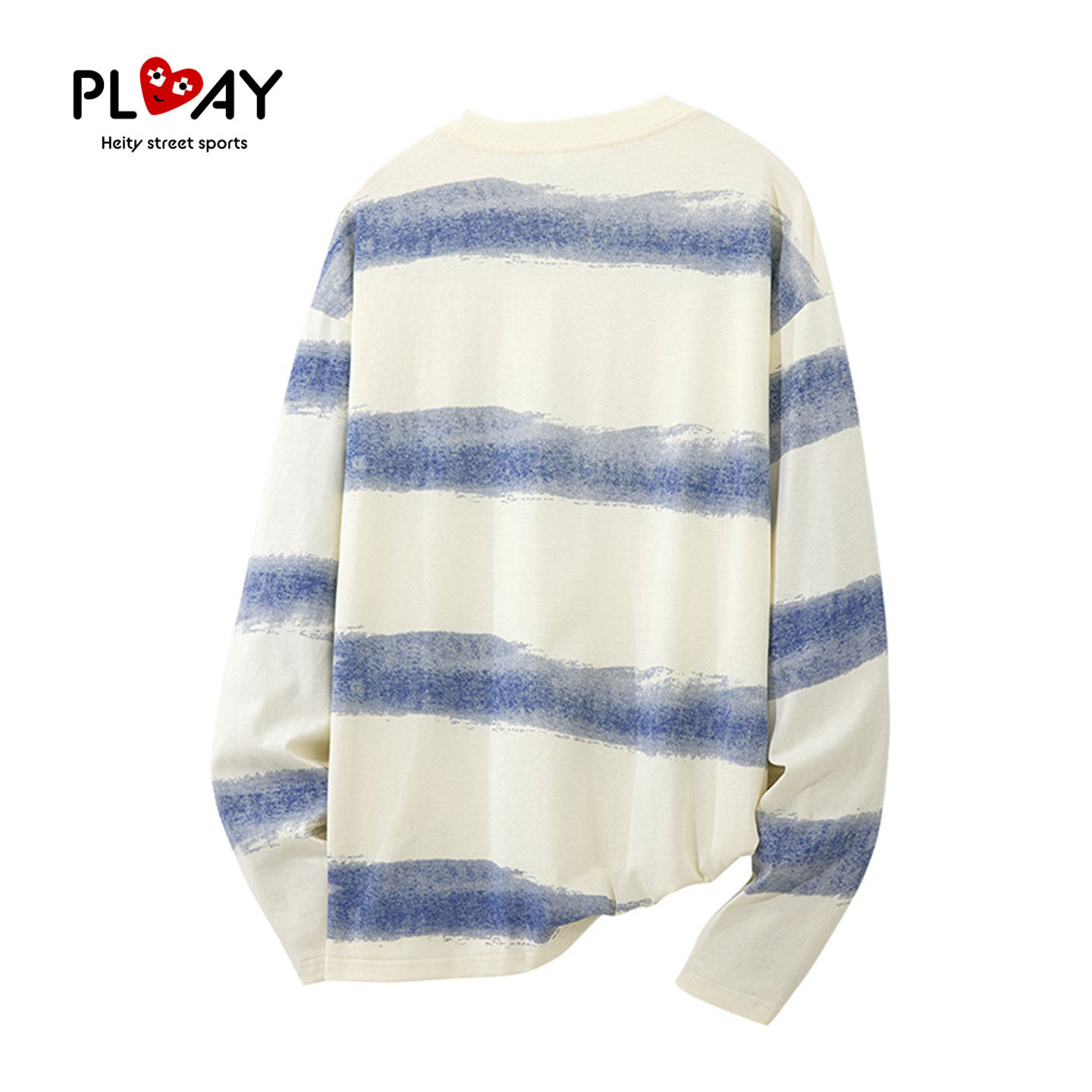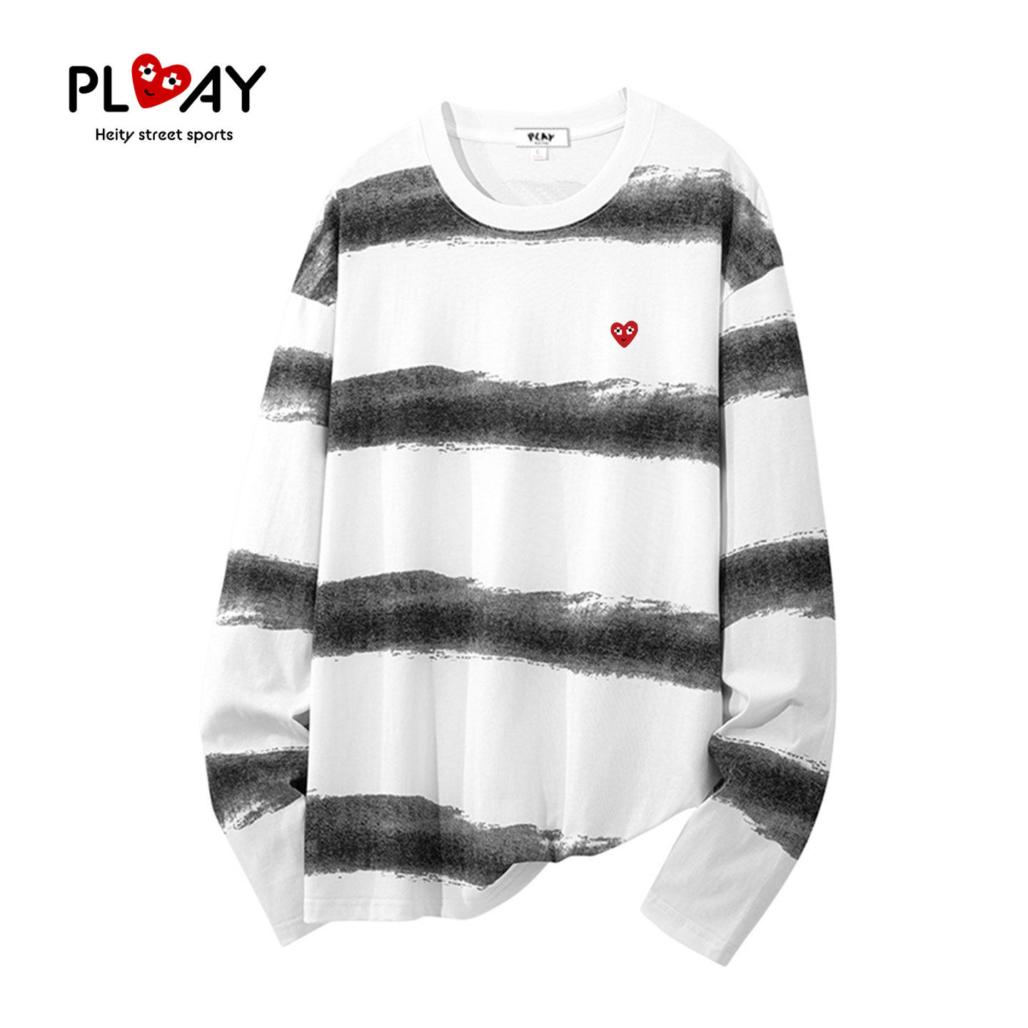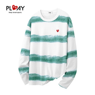 T恤秋季 新款 韩版 PLAY 潮男士 官方长袖 修身 圆领条纹宽松上衣 HEITY