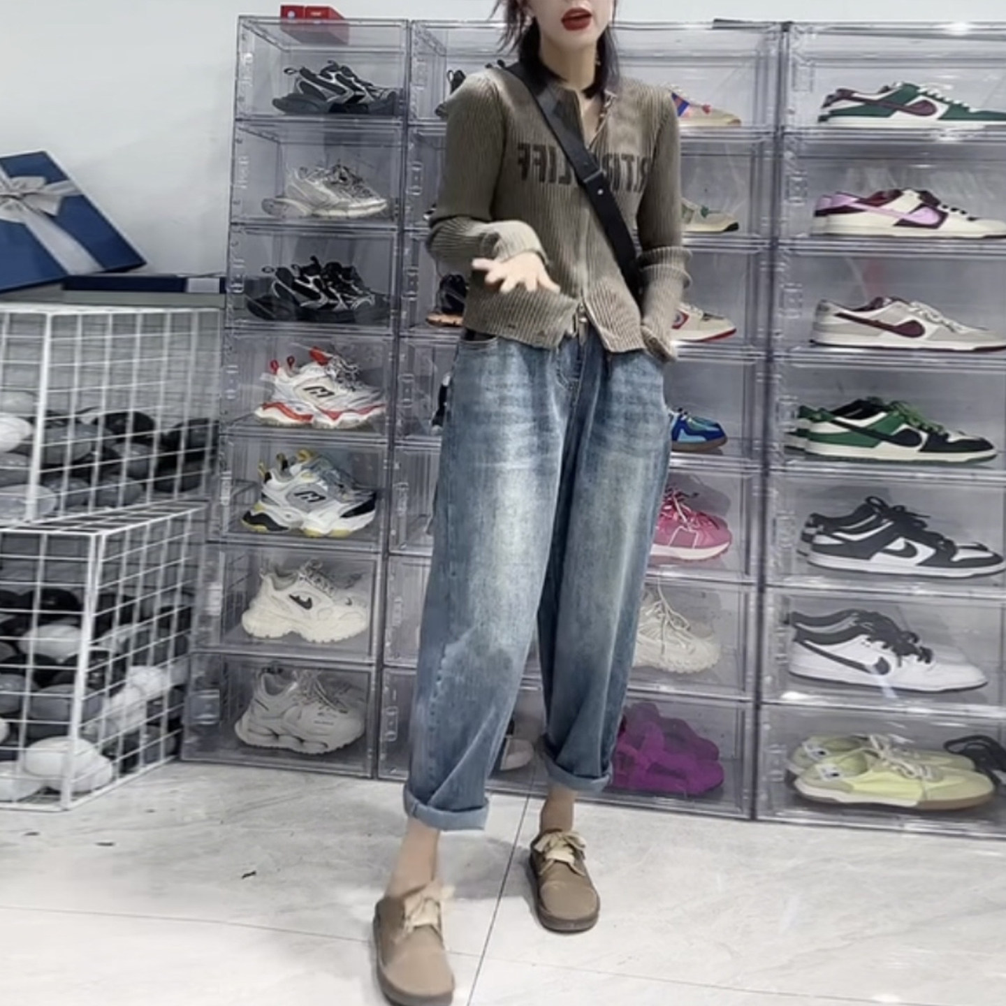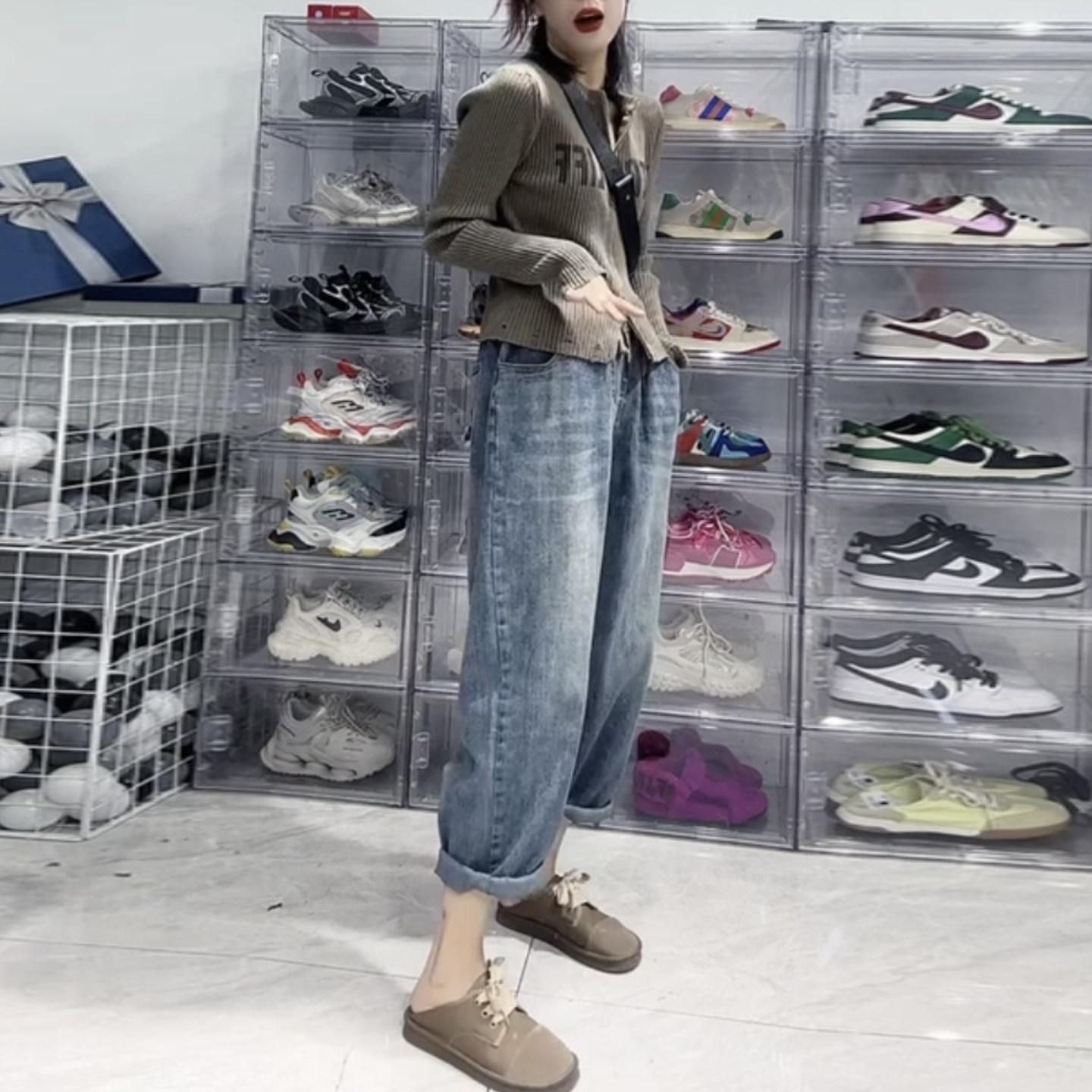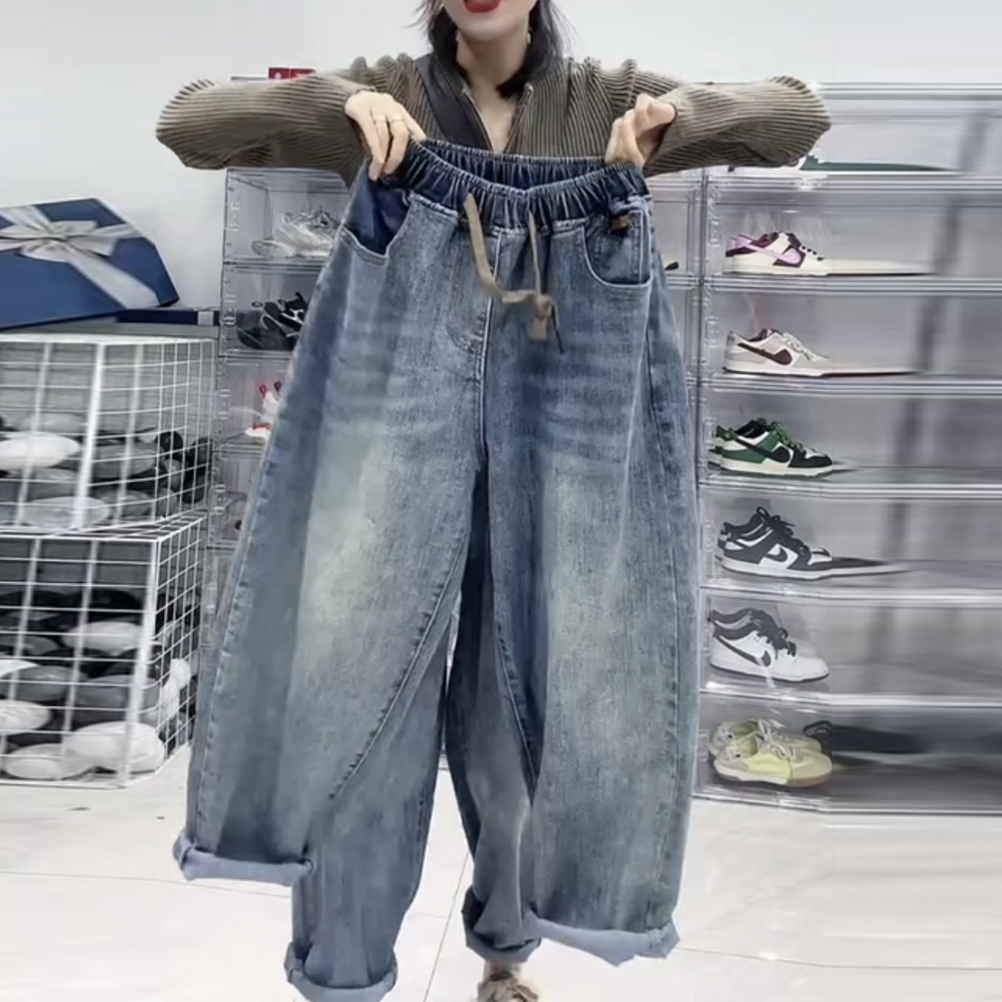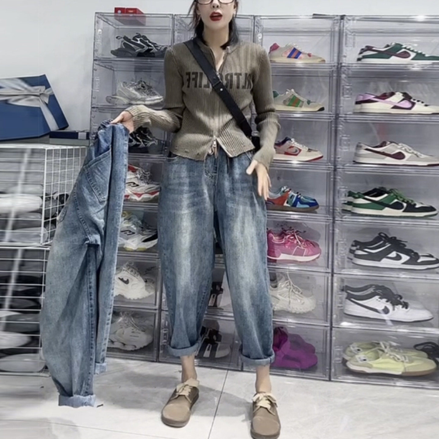 休闲百搭九分老爹裤 宽松显瘦松紧腰萝卜裤 女秋新款 哈伦弹力牛仔裤