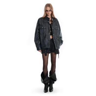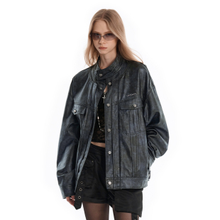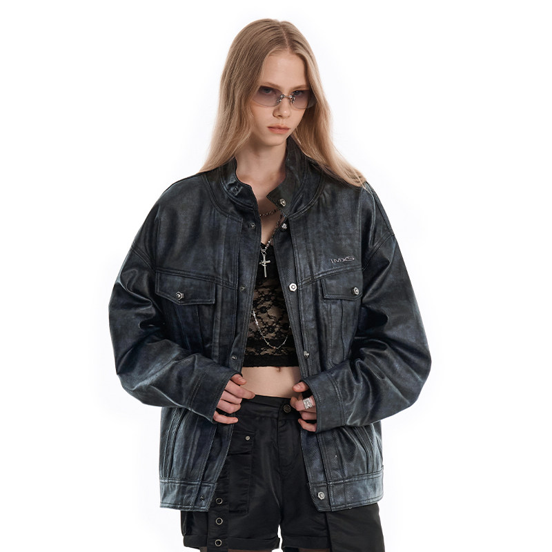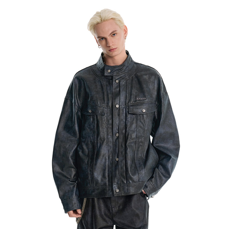 2025年新款 IMXS立领复古光泽擦脏刷蜡牛仔夹克秋季 外套男女同款