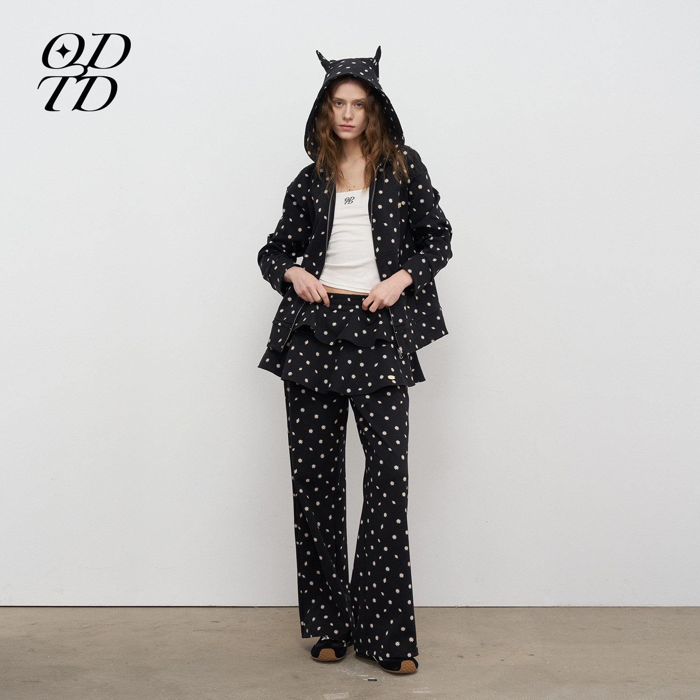 小耳朵针织小碎花卫衣长裤 新款 ODTD秋季 休闲套装 设计师女装
