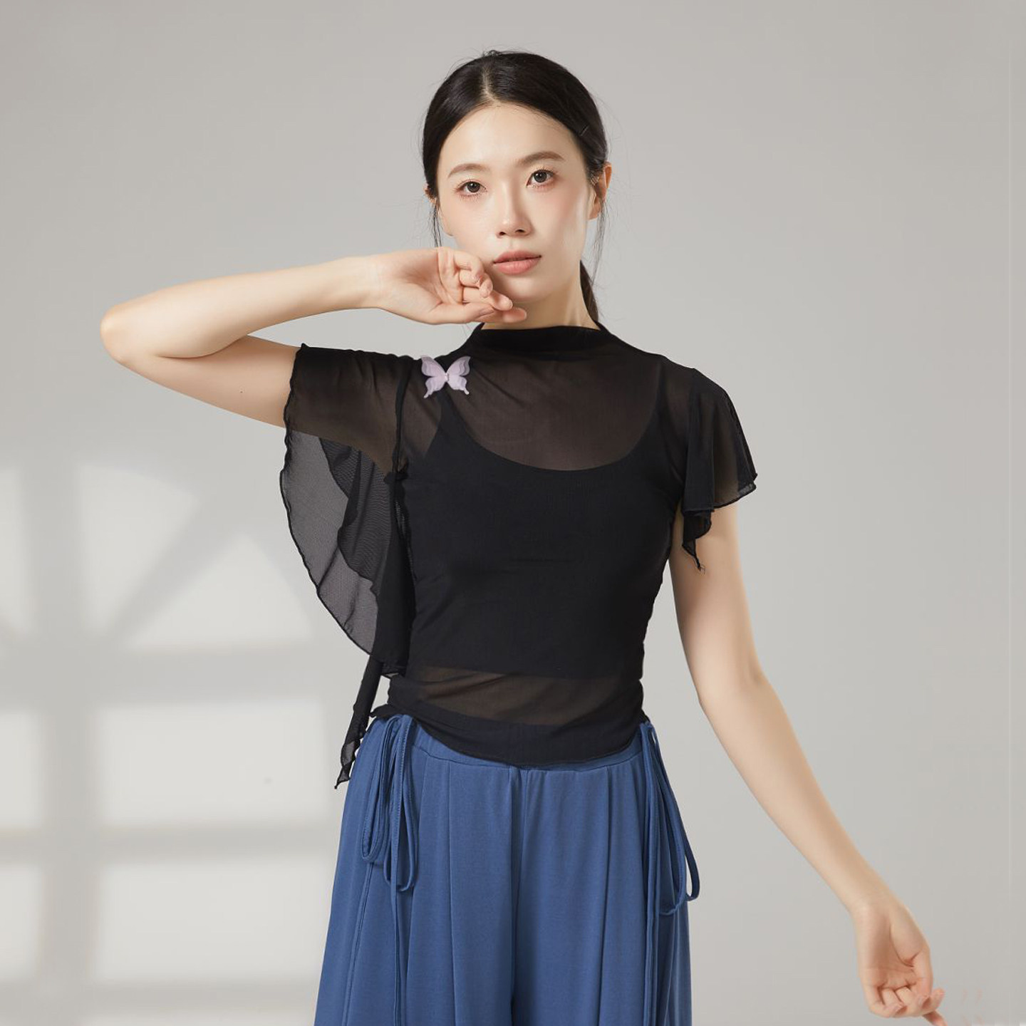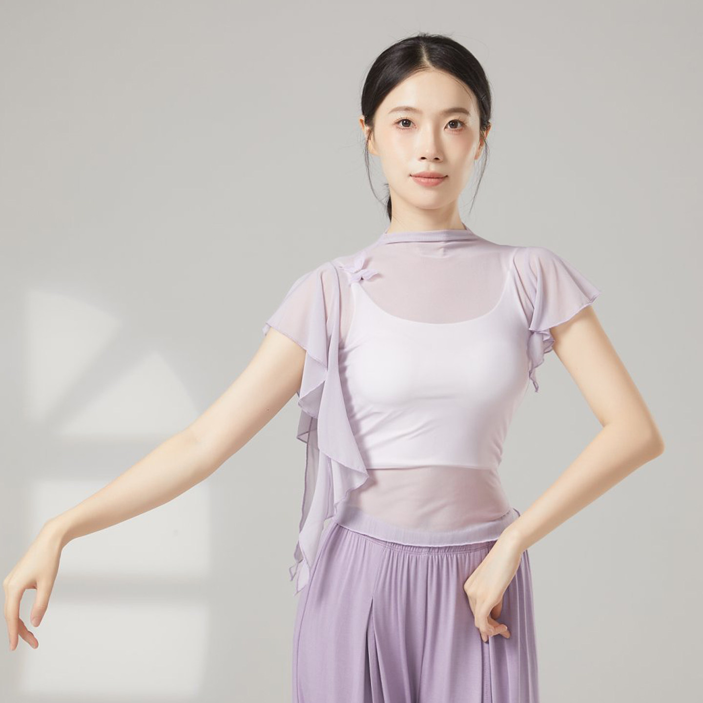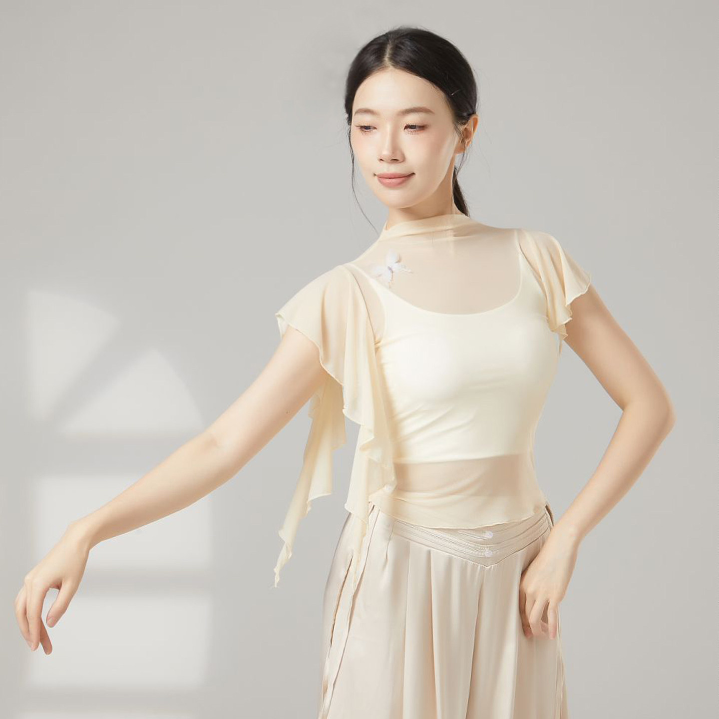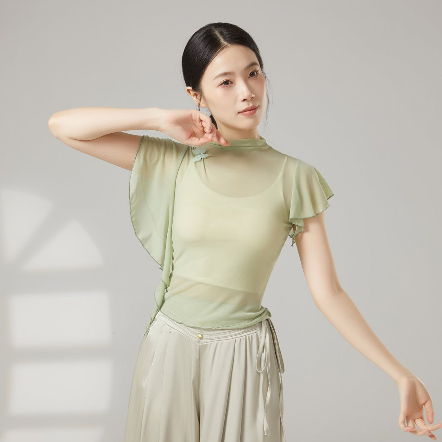 上衣女芭蕾舞练功服现代舞罩衫 古典舞高领纱衣身韵舞蹈服修身 短袖