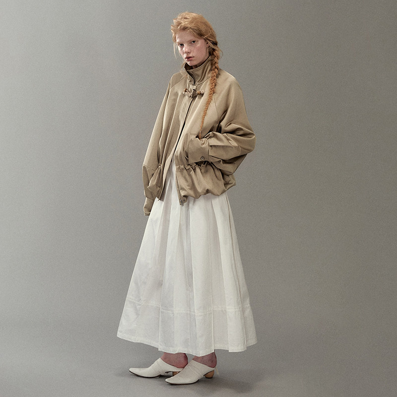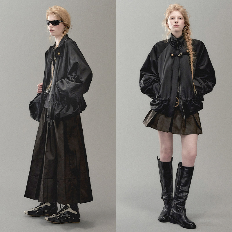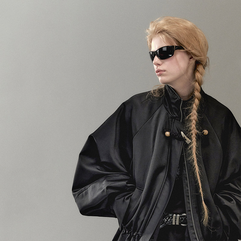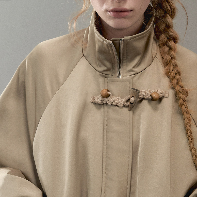 缎面短款 创世纪元 盘扣立领花苞袖 2025新款 风衣外套女 蓓蕾绪光
