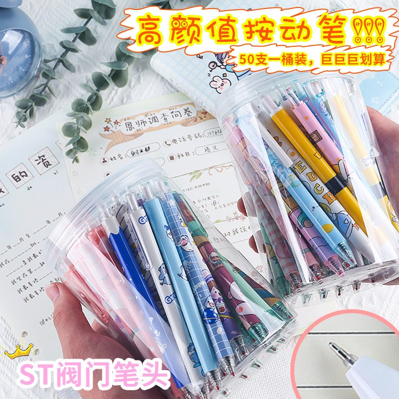 刷题笔ST笔头按动中性笔高颜值小白笔ins日系黑笔顺滑学生专用初中0.5黑色简约签字速干水性碳素签字圆珠笔芯