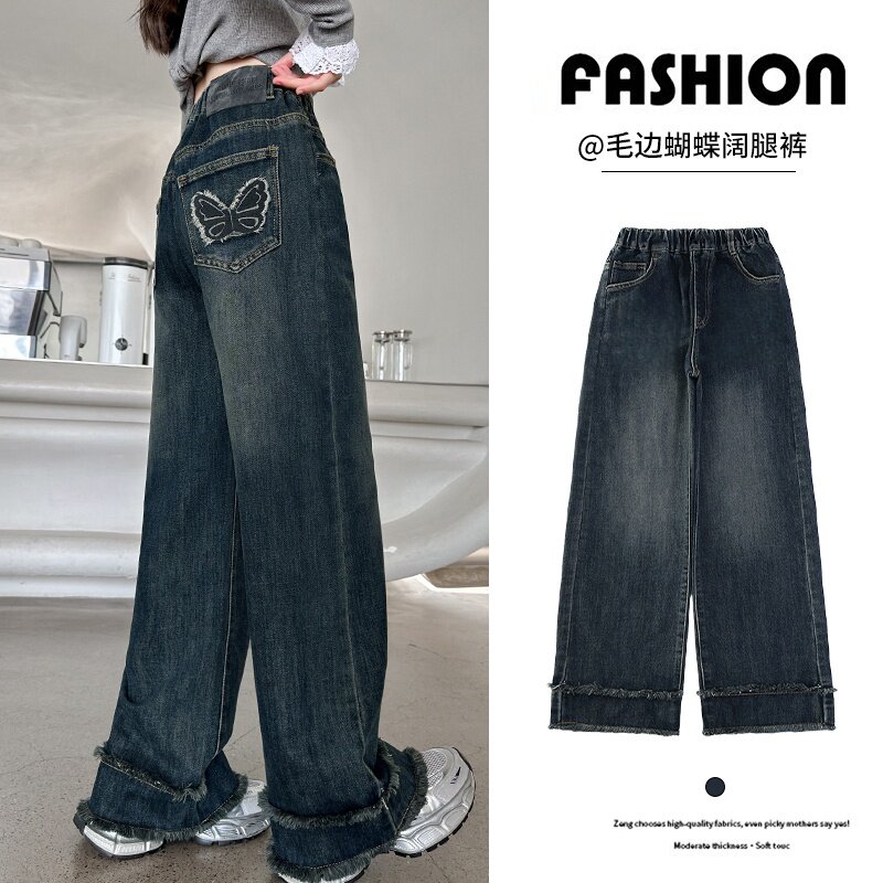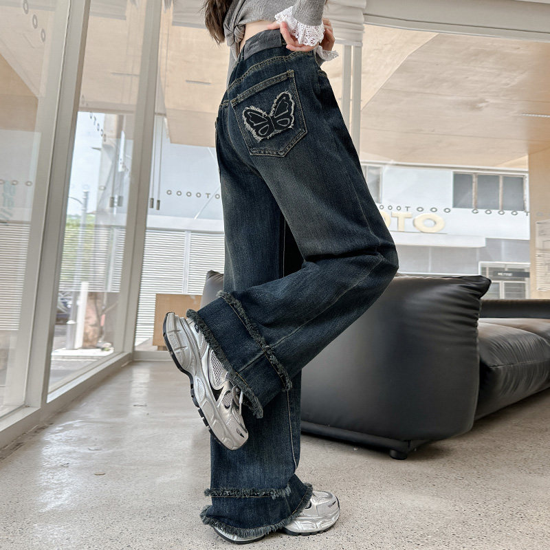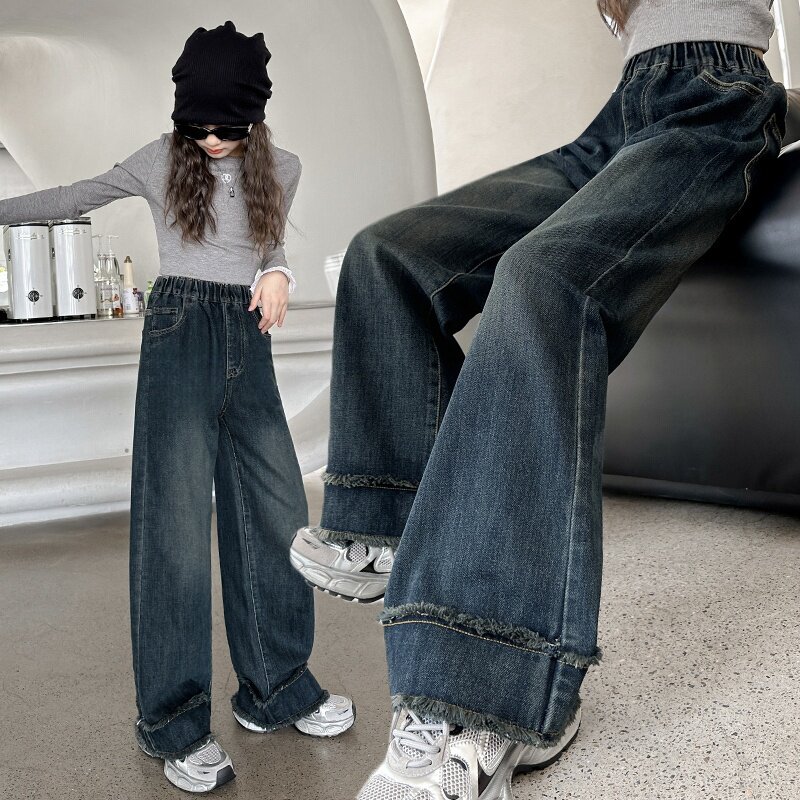 洋气女孩直筒裤 宽松休闲牛仔裤 时尚 韩版 潮 女童裤 阔腿裤 子春秋新款
