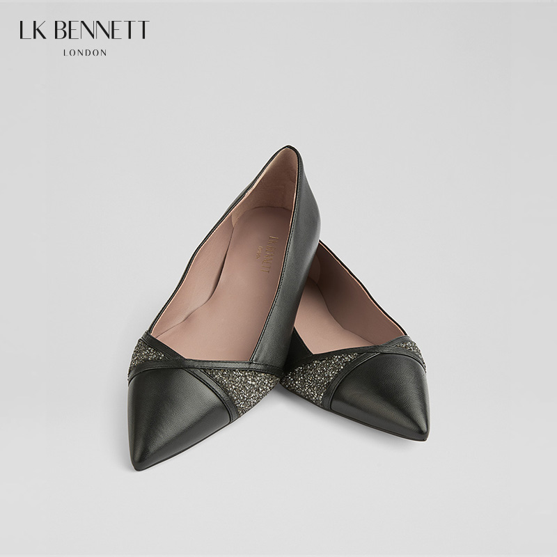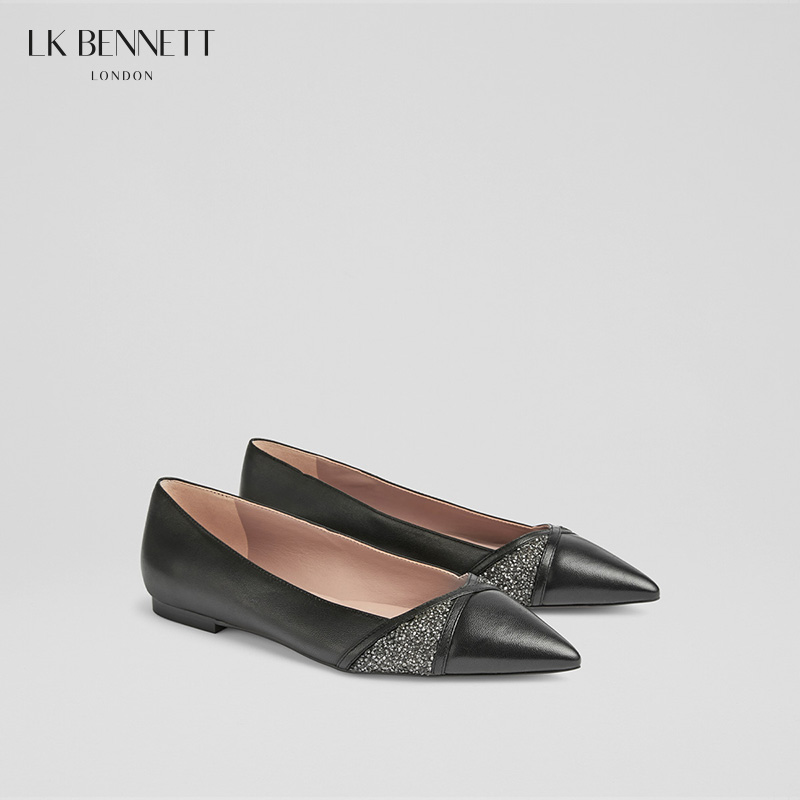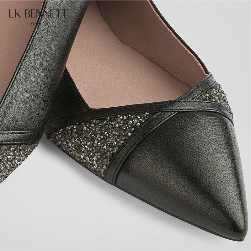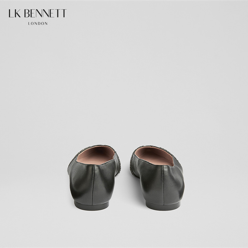 浅口尖头通勤水钻真皮单鞋 新款 女2025年秋季 lkbennett黑色平底鞋