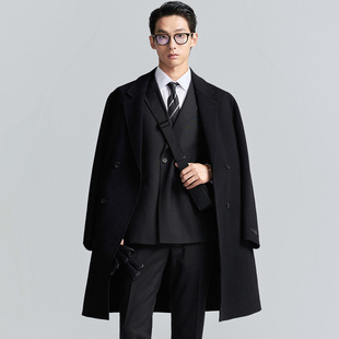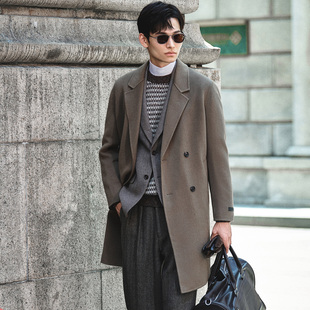 商务休闲100%羊毛长款 报喜鸟秋冬男士 大衣宽松外套 手工双面呢