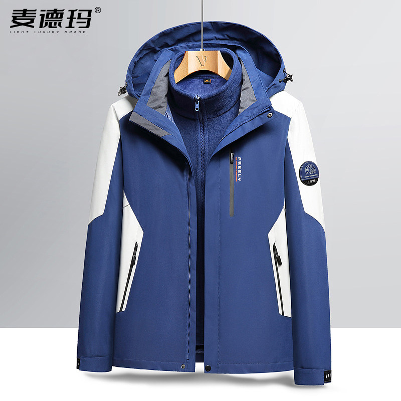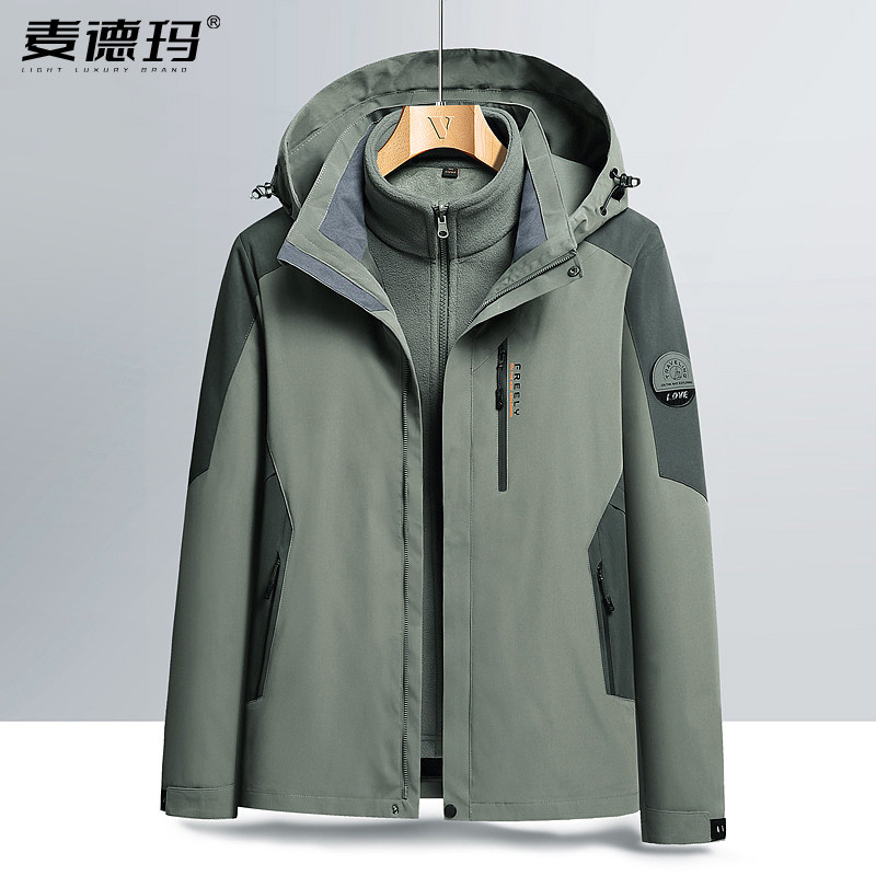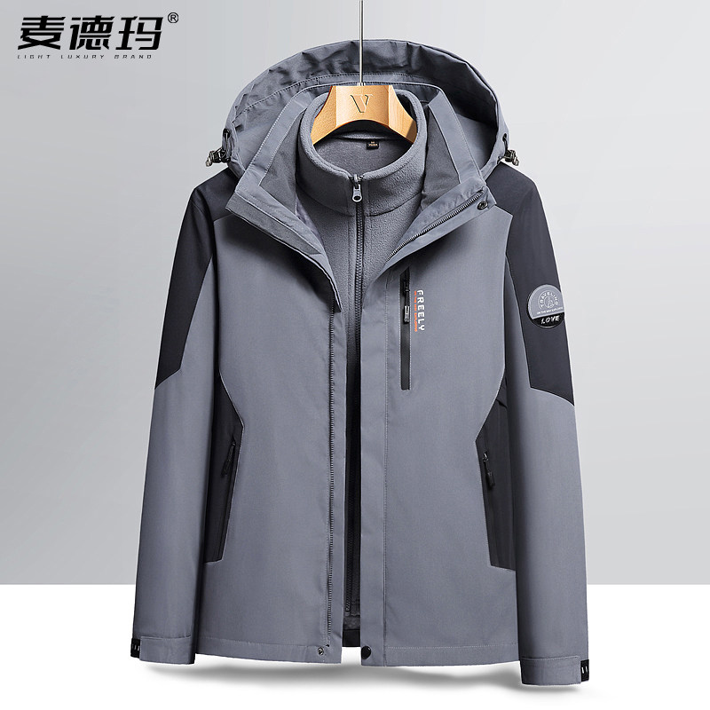 骆驼男装 冲锋衣男户外夹克外套三合一三防羽绒内胆徒步登山透气冬