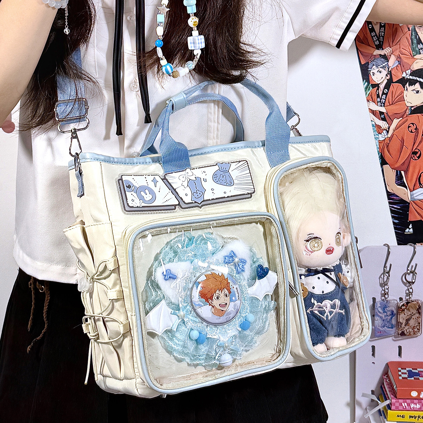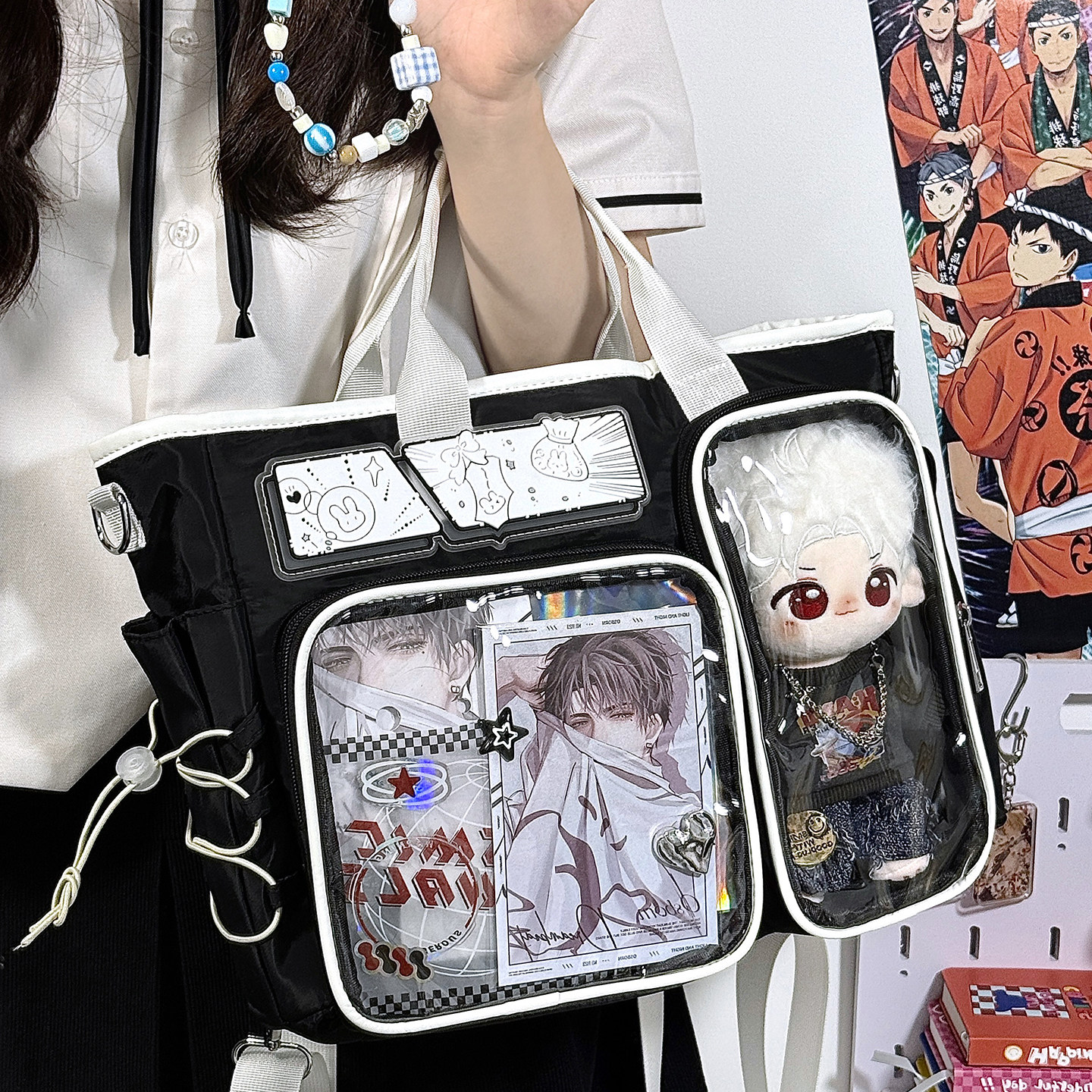 二次元 大容量单肩斜挎手提包透明谷子痛包20cm娃包学生双肩书包女