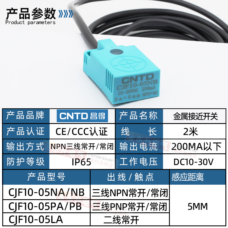 昌得CNTD接近开关CJF10 NPN三线直流24V扁形LA 05NAB传感器电感式
