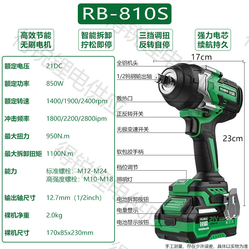 无刷电动扳手锂电充电冲击扳手大扭力架子工电动套筒风炮强力汽修