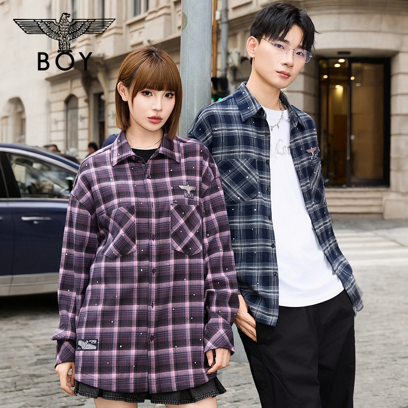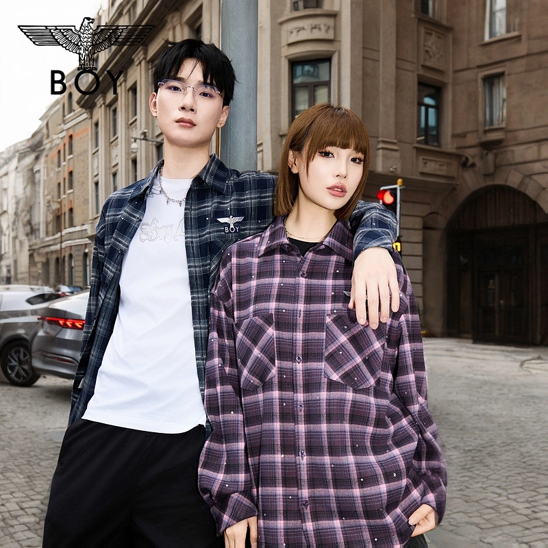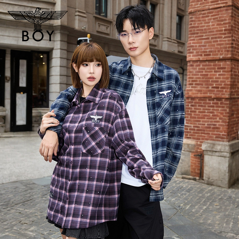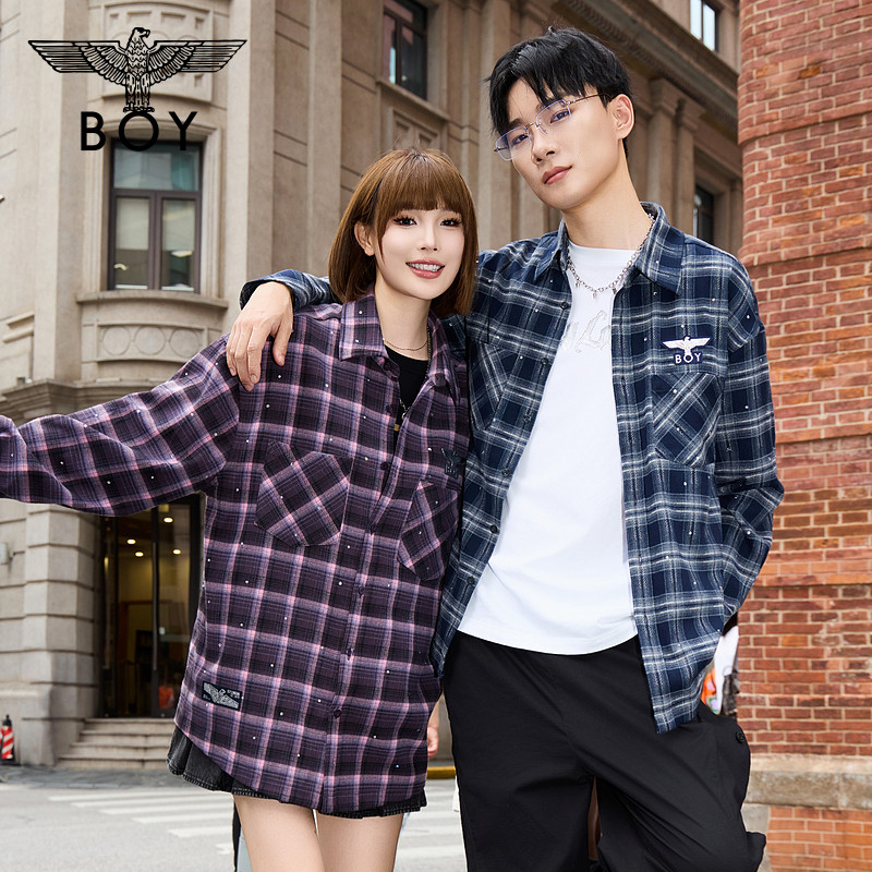 红色格子长袖 美式 衬衫 男款 高级感内搭情侣衬衣 Dream 春秋季 made