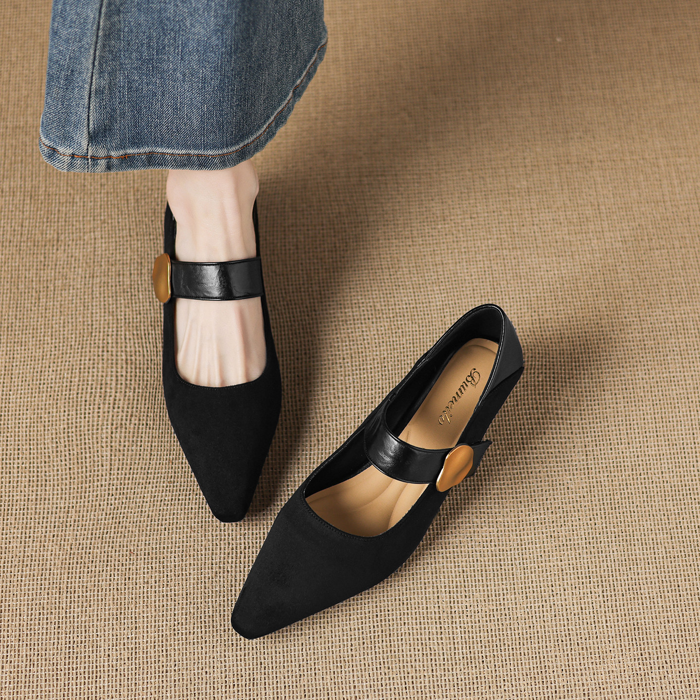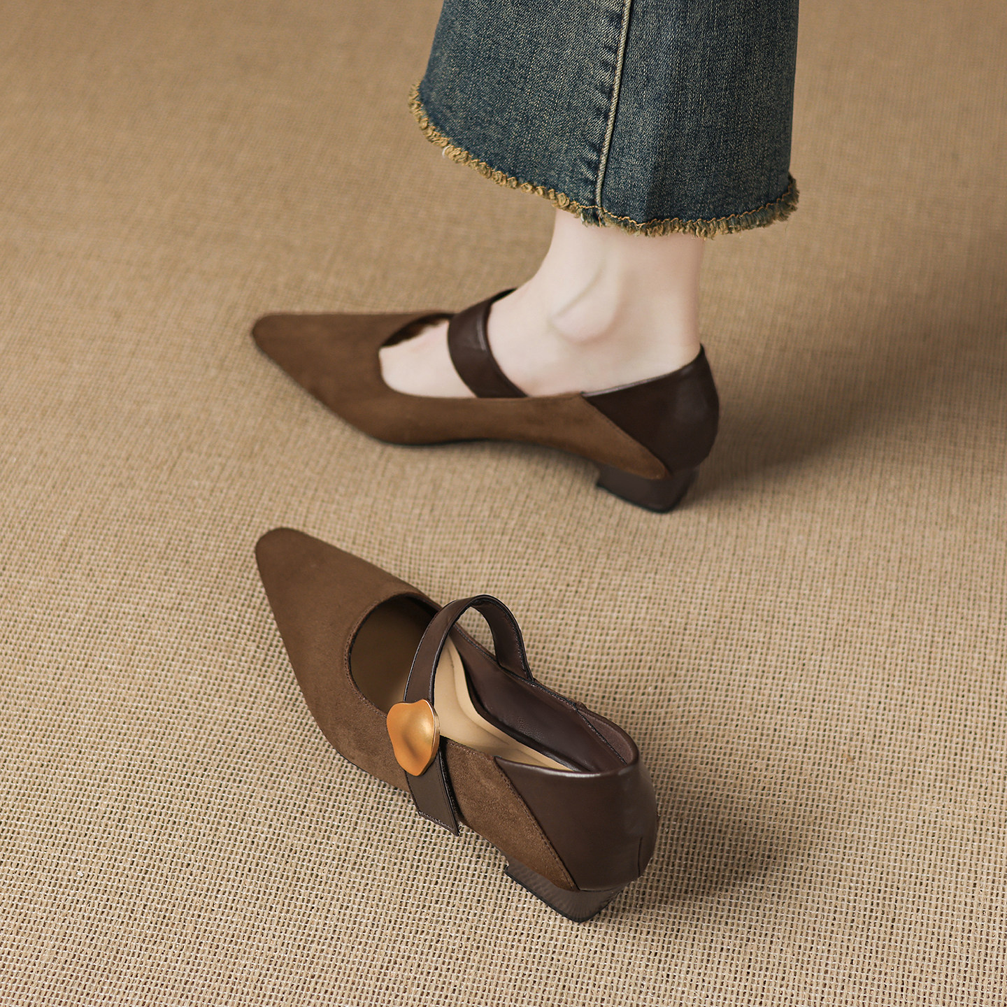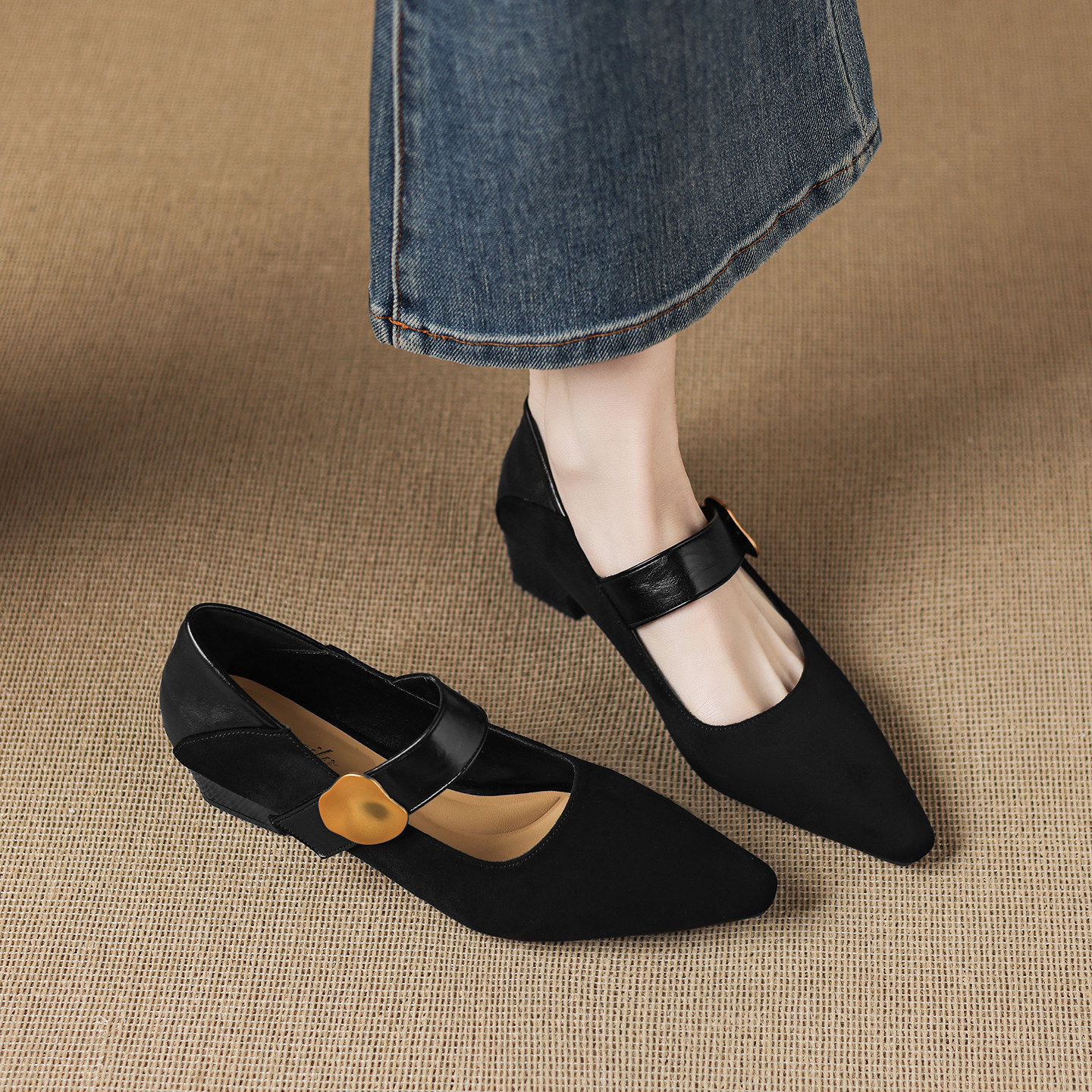 粗跟巨好看尖头浅口单鞋 春法式 女不累脚 子女2026新款 复古玛丽珍鞋