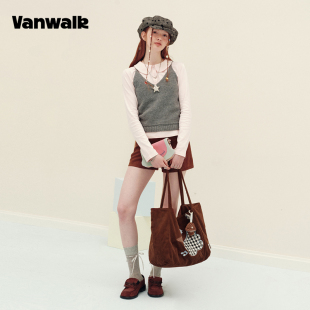 VANWALK手账屋 大容量手提单肩妈咪包女休闲通勤帆布袋托特包 新款