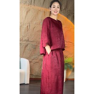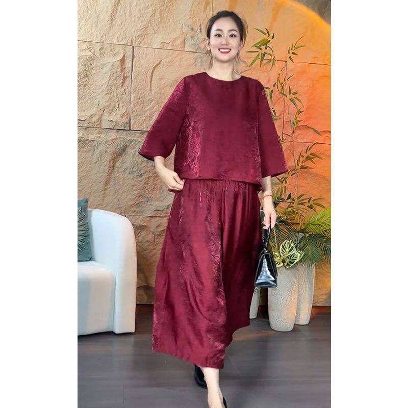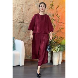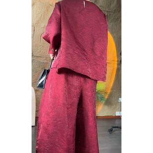 新中式 女春夏季 中袖 上衣阔腿裤 提花女国风气质复古时尚 两件装 套装