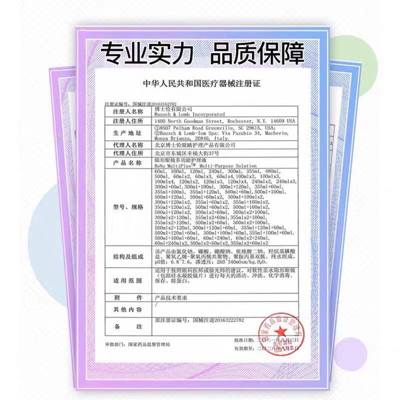 博士伦隐形眼镜护理液美瞳软镜护理液润明清透进口杀菌除蛋白正品