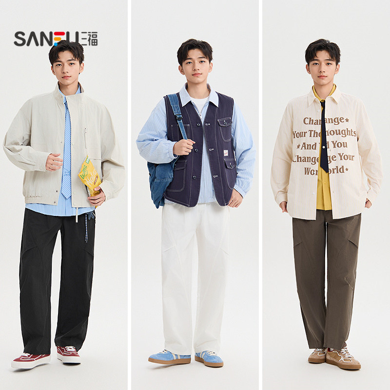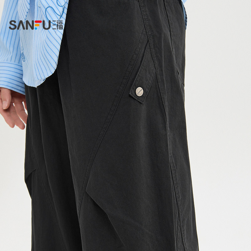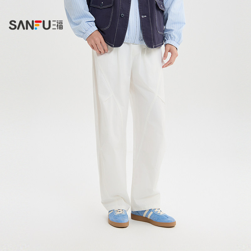 裤 三福2026夏季 长裤 男分割打褶抽绳宽松微弯刀裤 子521754 休闲裤