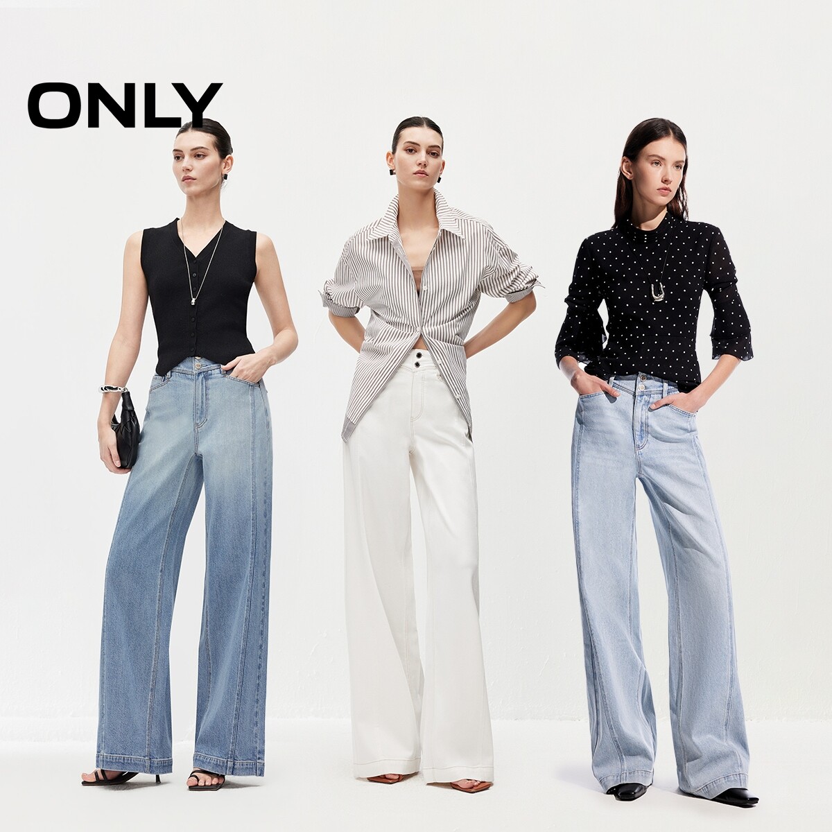 牛仔裤 绫致ONLY2026春季 水洗高腰宽松直筒裤 个性 女 新款