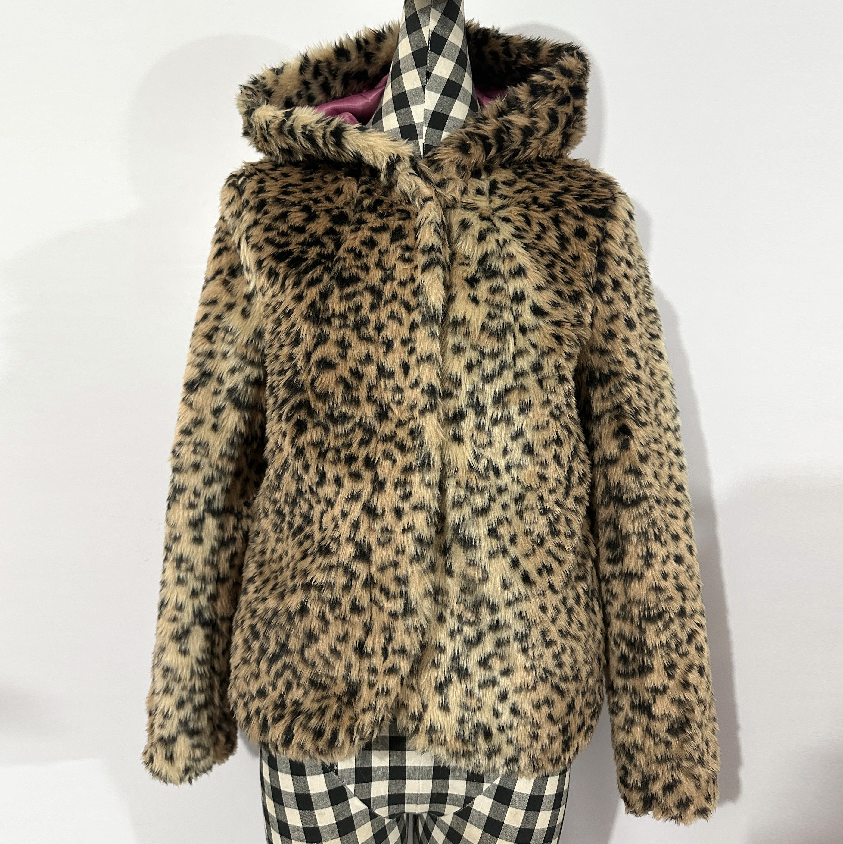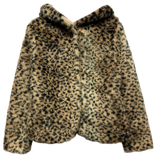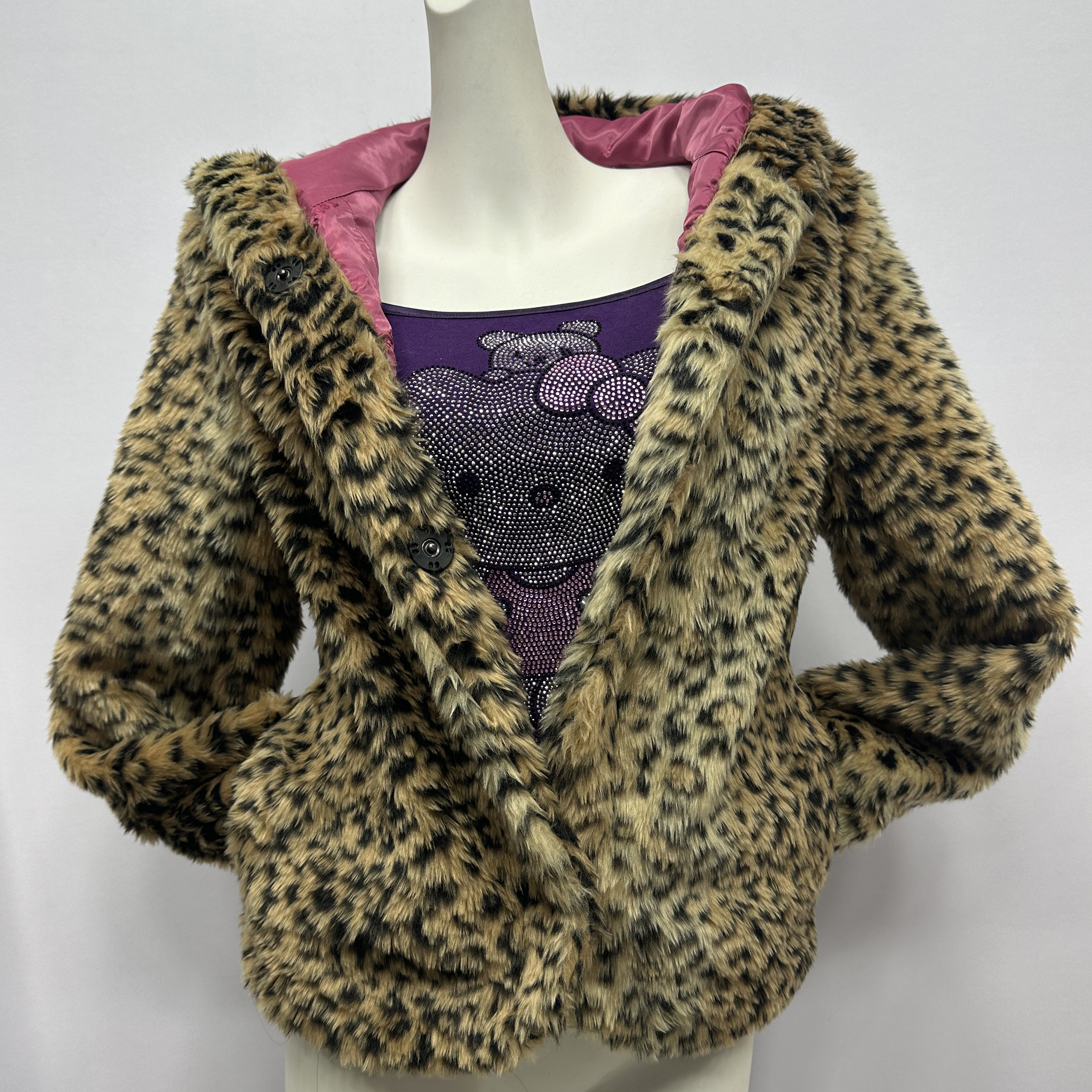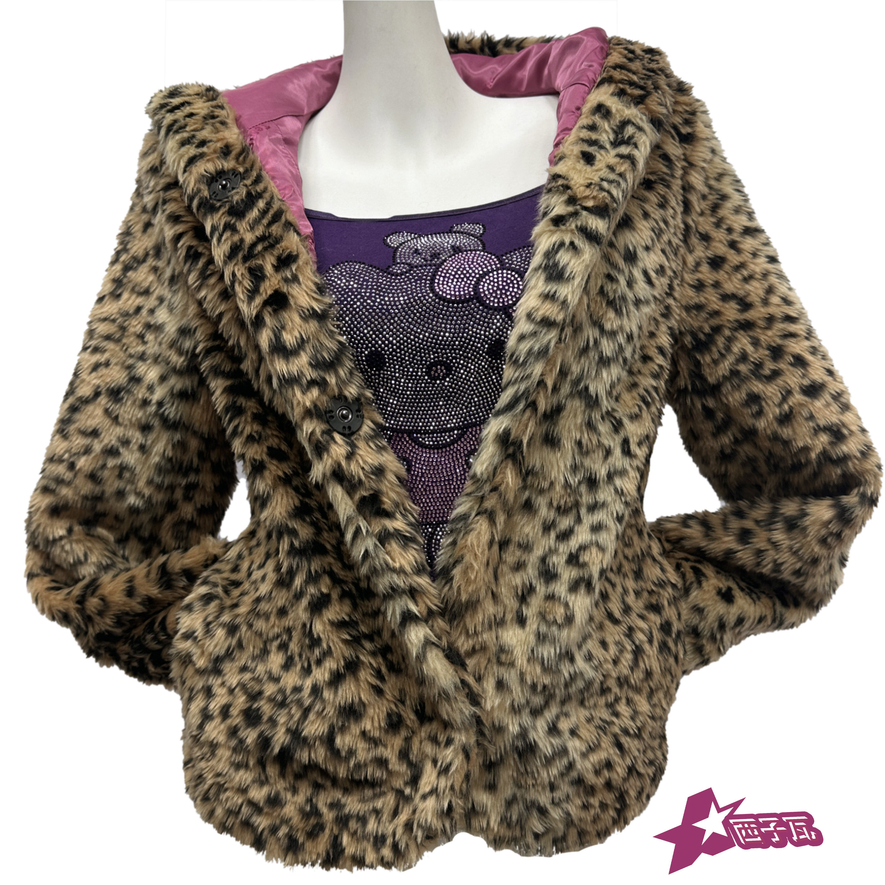 古早感涩谷辣妹千禧复古豹纹环保皮草毛毛连帽外套女