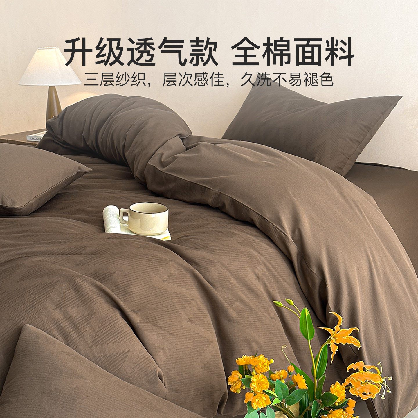 洁丽雅60支三层纱床上四件套纯棉全棉2026新款 床品 床单被套床笠款