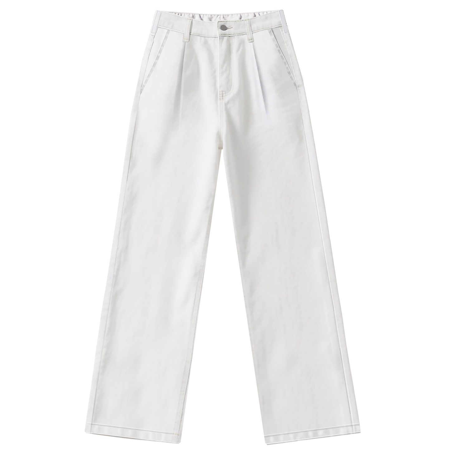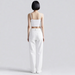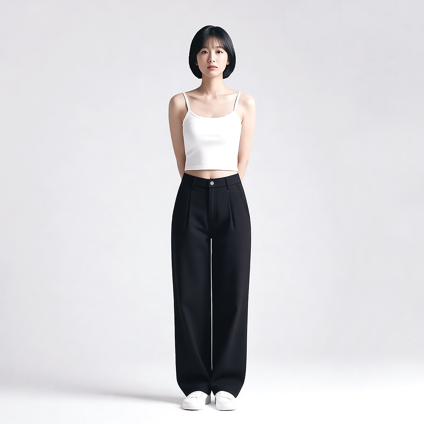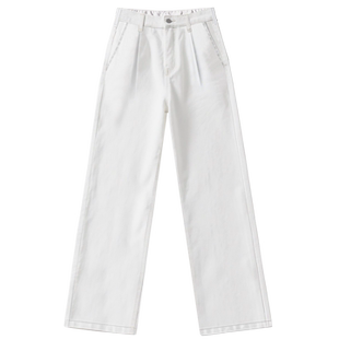 女士大码 子15 黑色白色中厚棉质半松紧腰宽松休闲直筒阔腿长裤