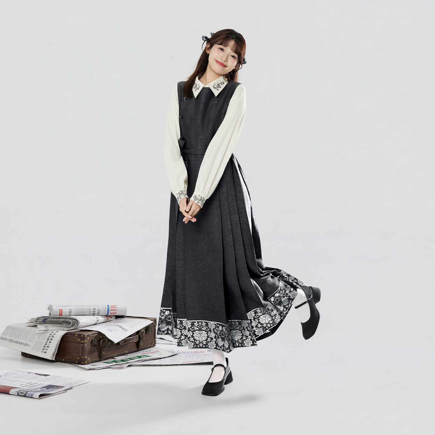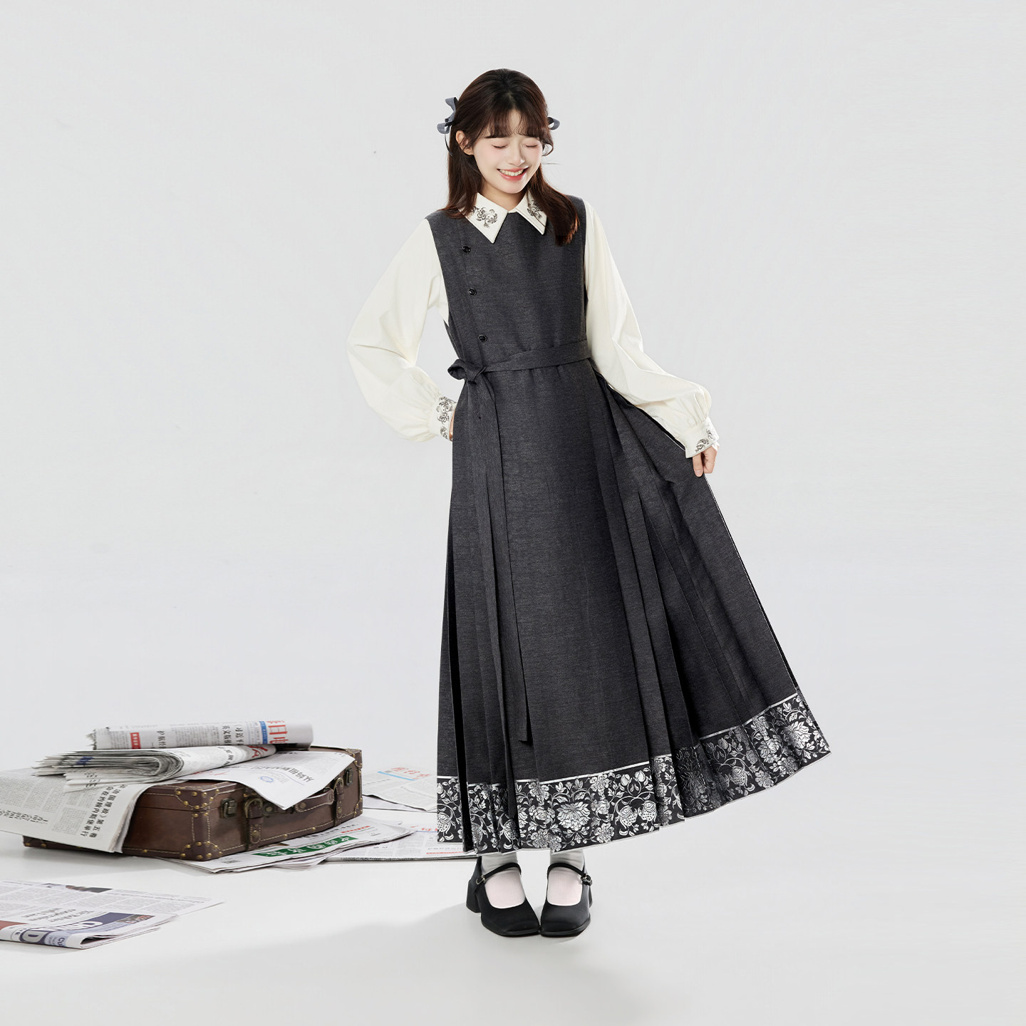 刺绣翻领衬衫 织造司 连衣马面裙改良明制汉服中式 无袖 上衣女 书砚