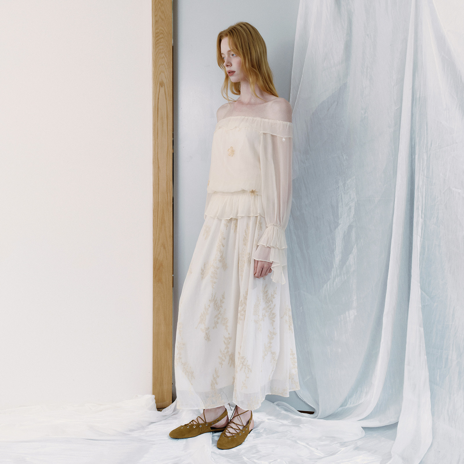 高级时髦气质双层半裙女 新品 wana try金线绣花纹理感长裙2026春季