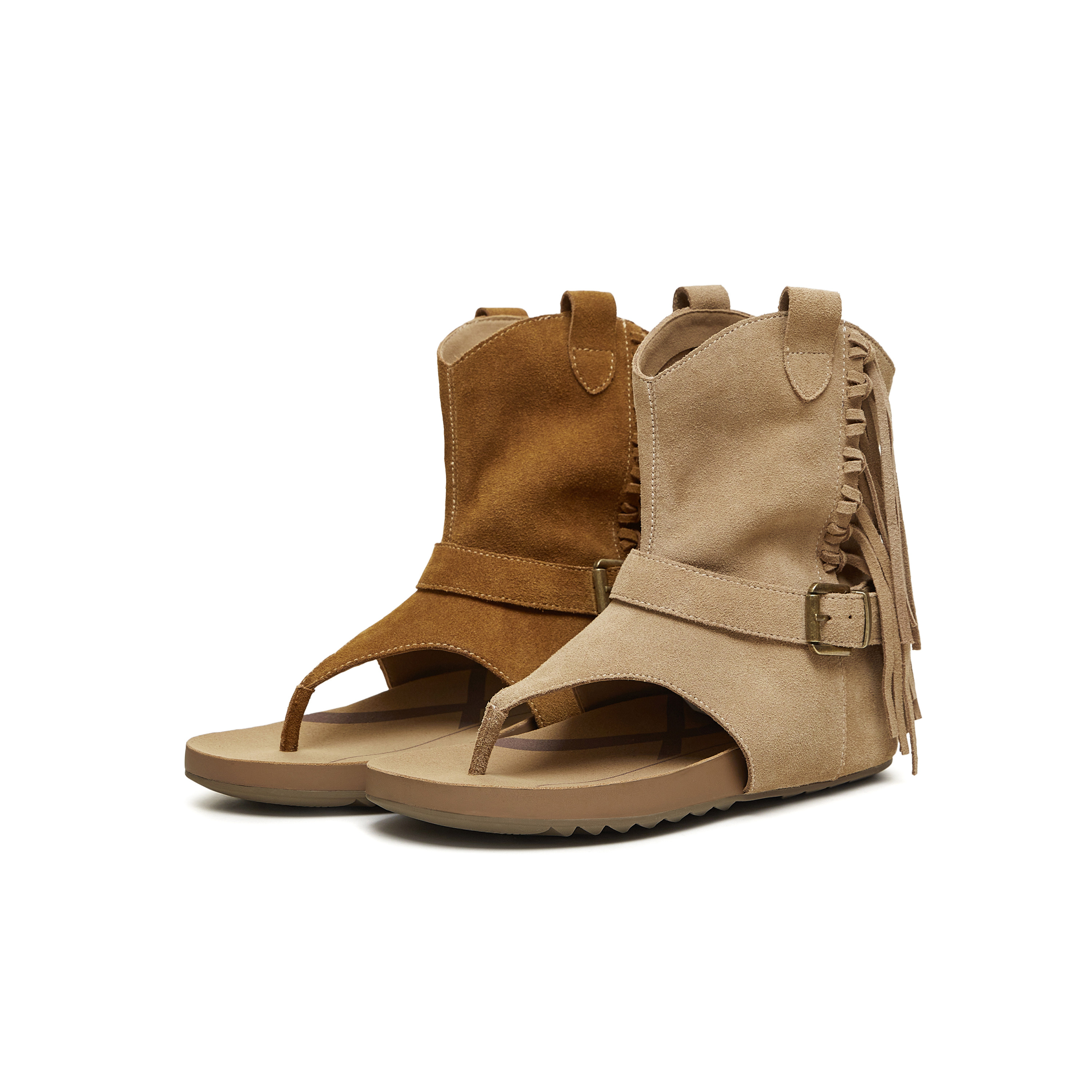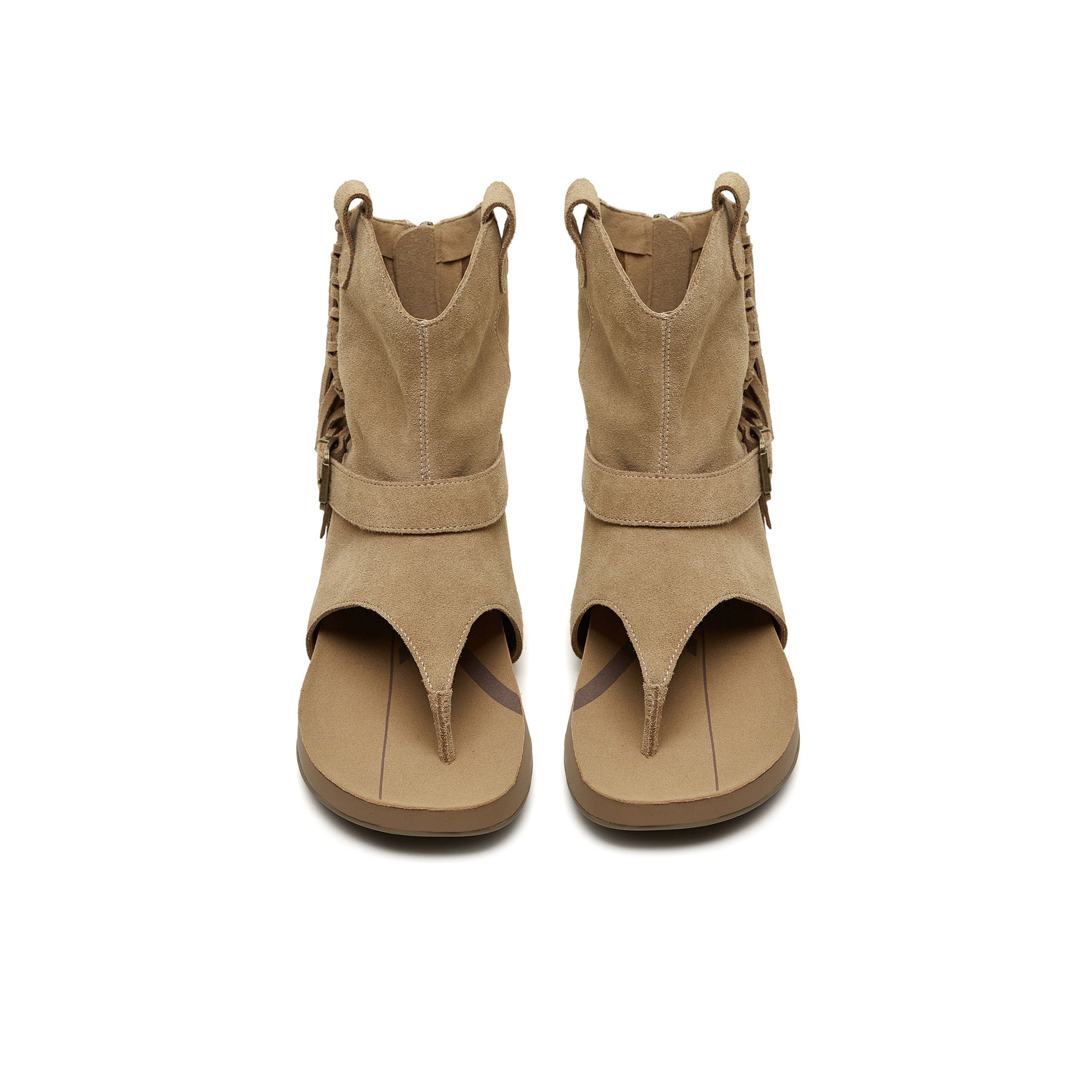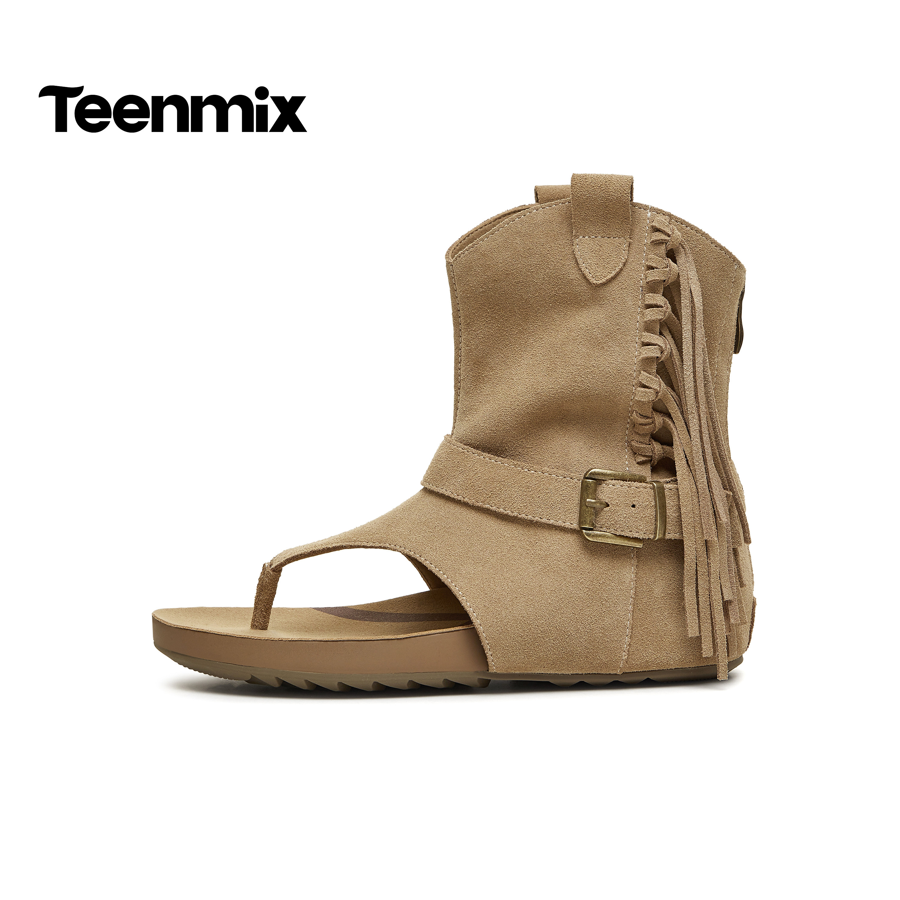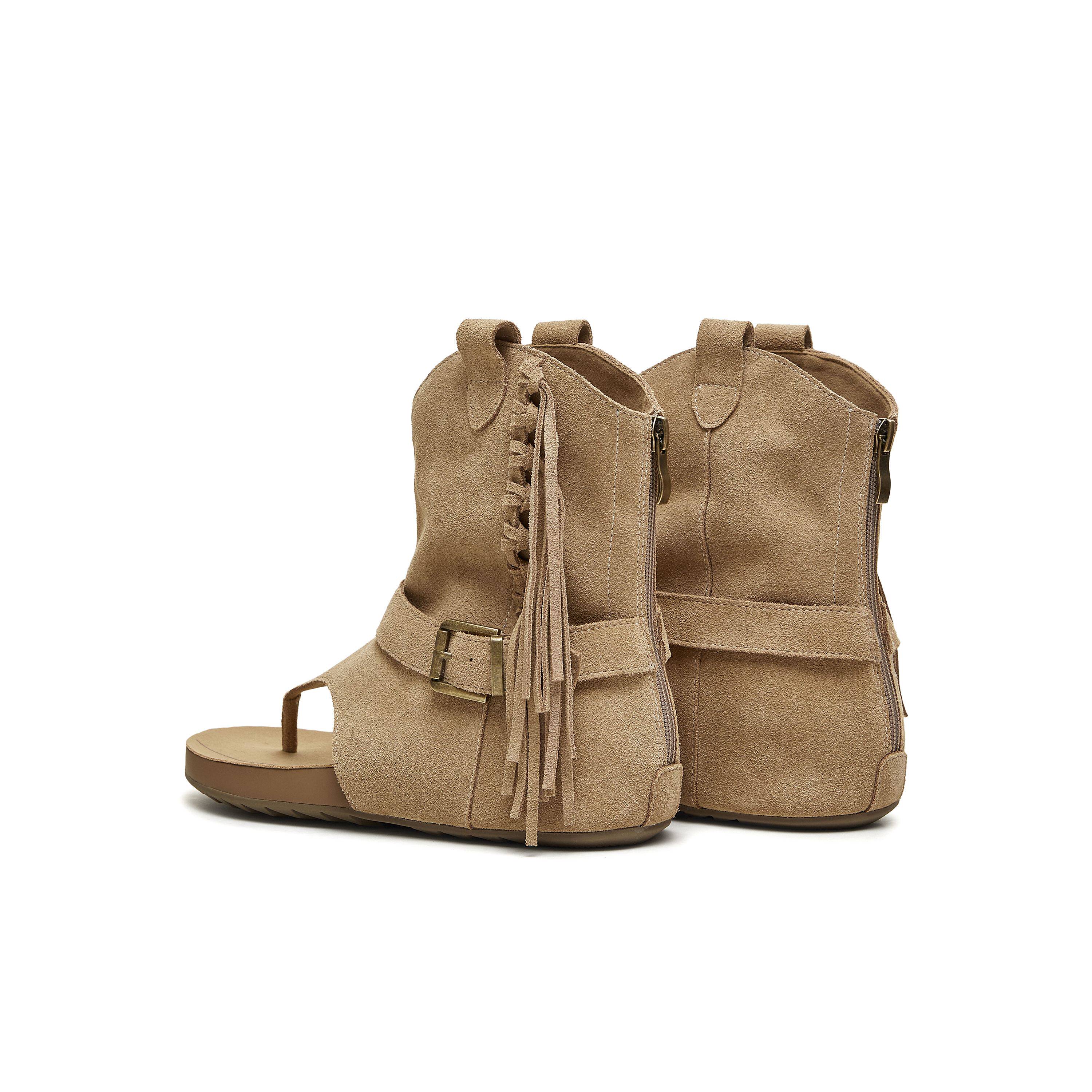 天美意复古夹趾人字拖流苏套筒凉靴女外穿平底罗马凉鞋 2026夏新款