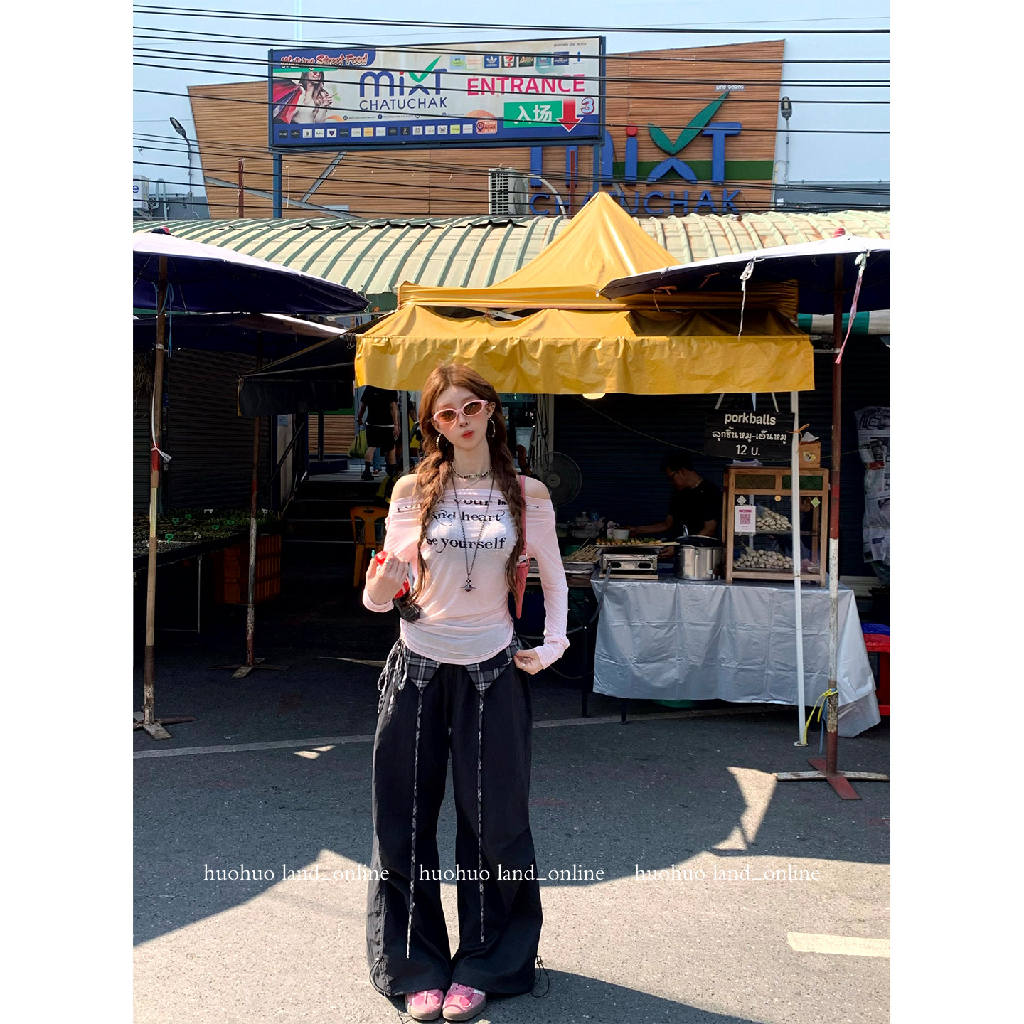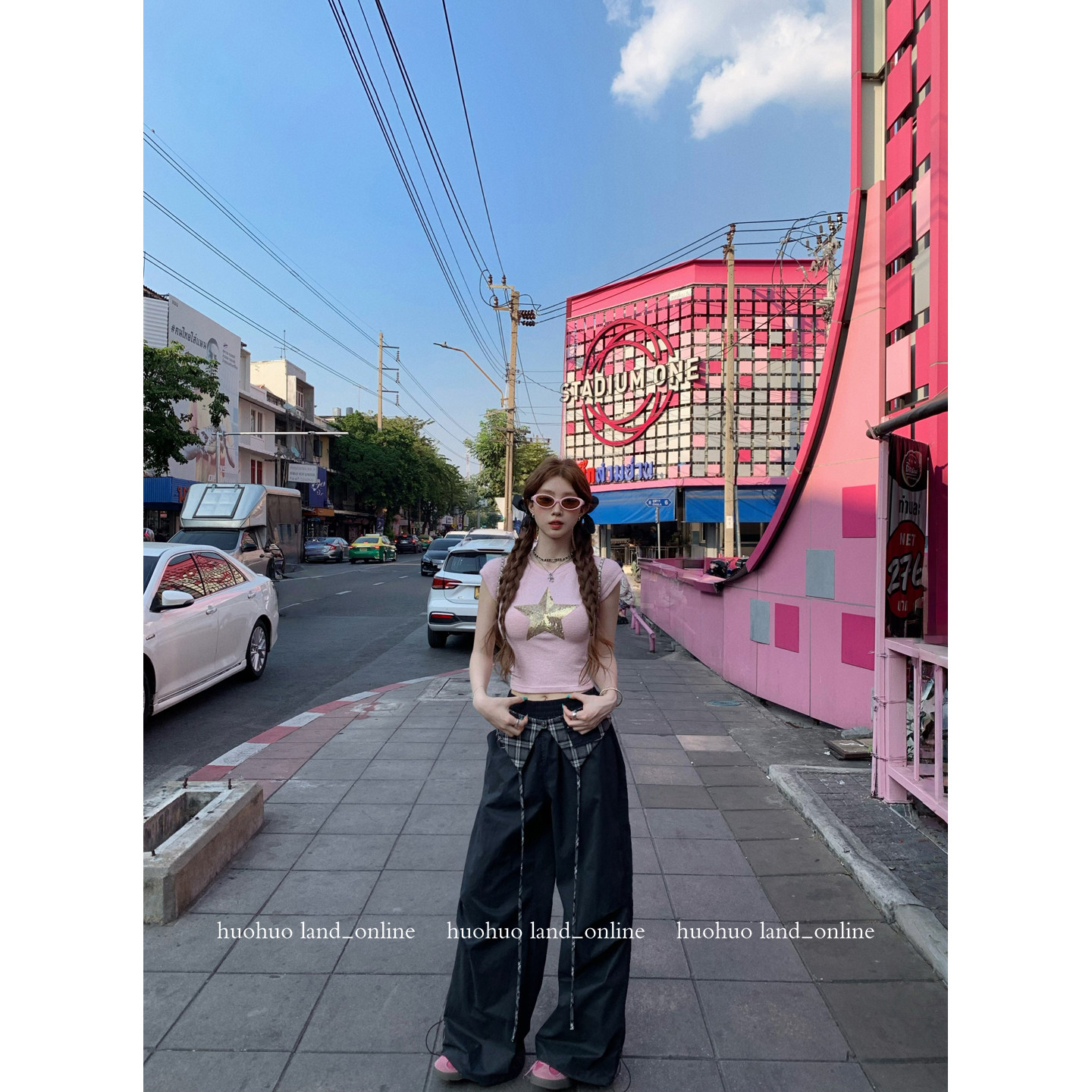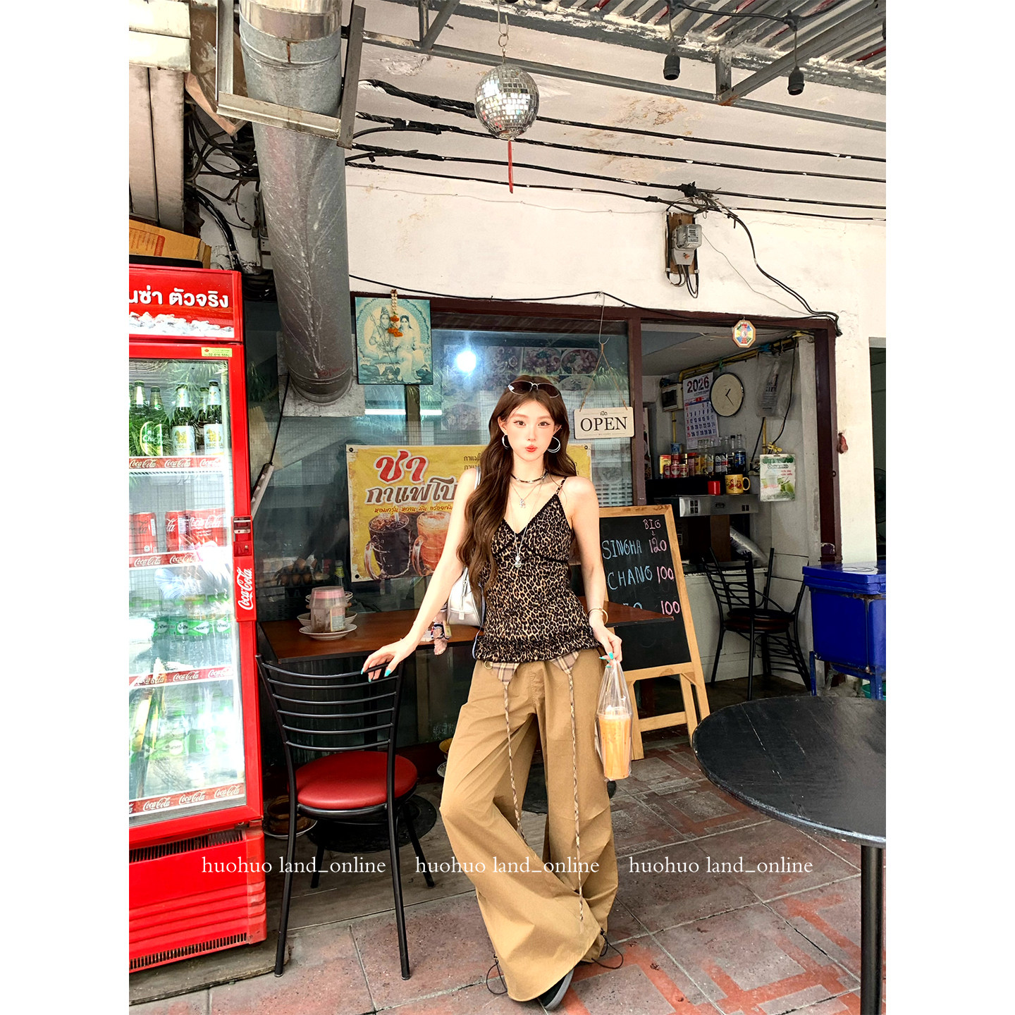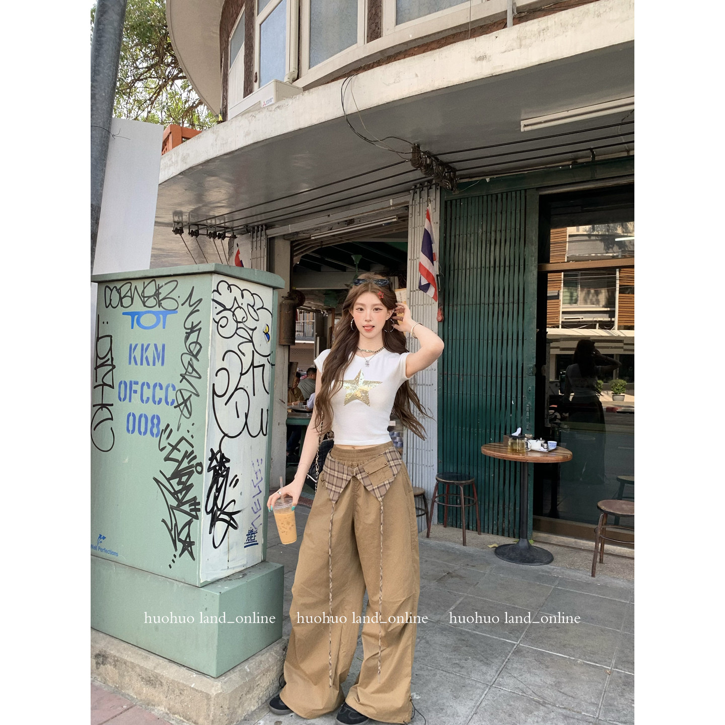 女复古拼接高腰阔腿封伞兵裤 巨遮胯2026春夏新款 雅痞神裤 HuoHuo
