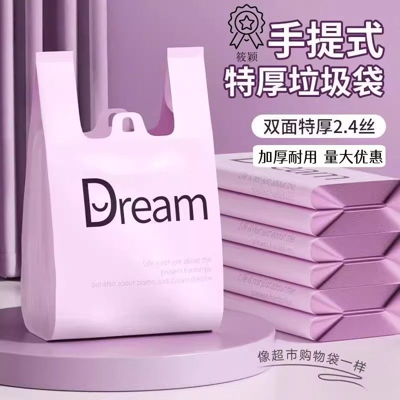 梦想紫色垃圾袋家用手提大号背心式 客厅厨房用特厚壁挂塑料袋打包