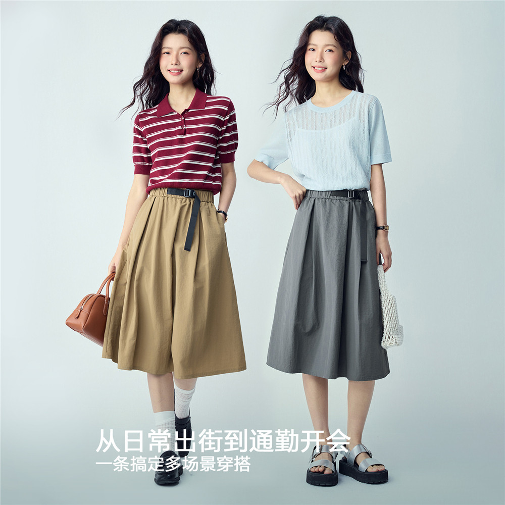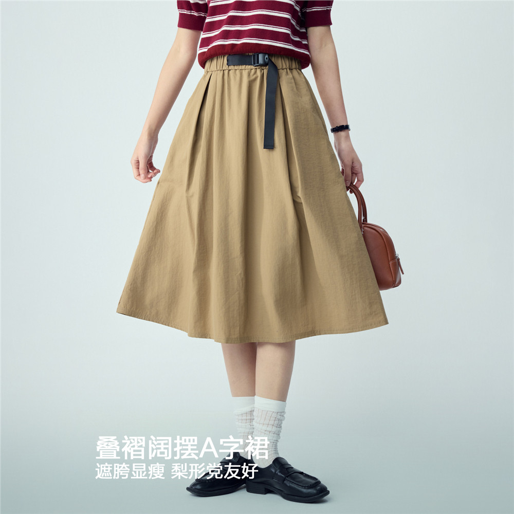 佐丹奴裙子女2026年夏季 黑科技凉感腰带松紧腰a字半身裙05466063