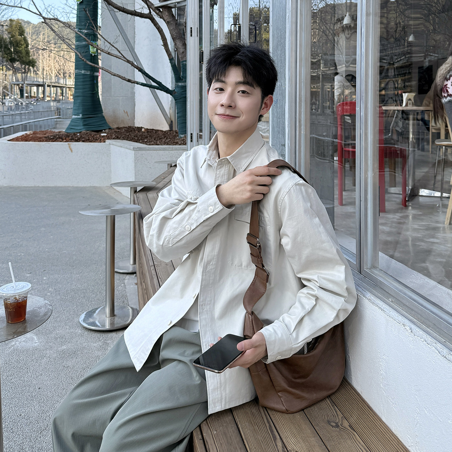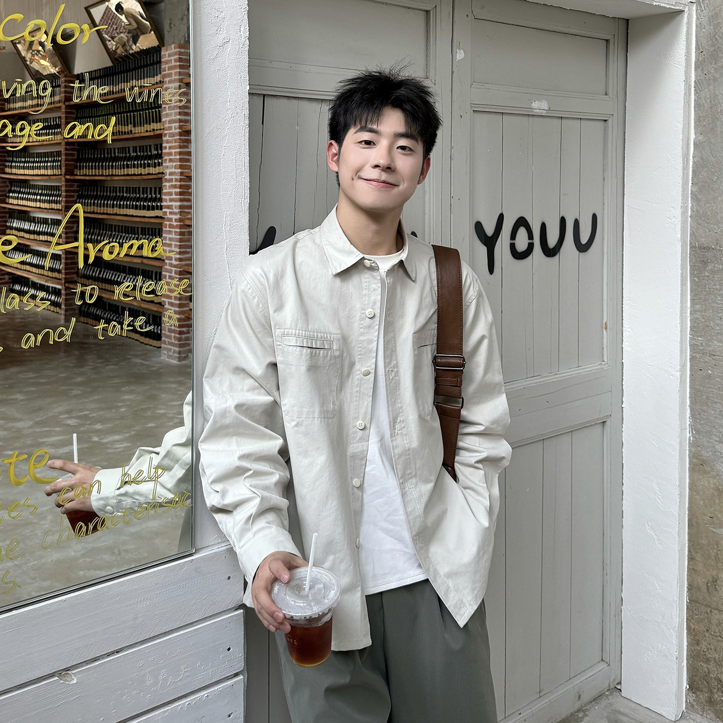 纯棉休闲长袖 春季 男复古基础款 风翻领衬衫 衬衣外套男生 日系工装