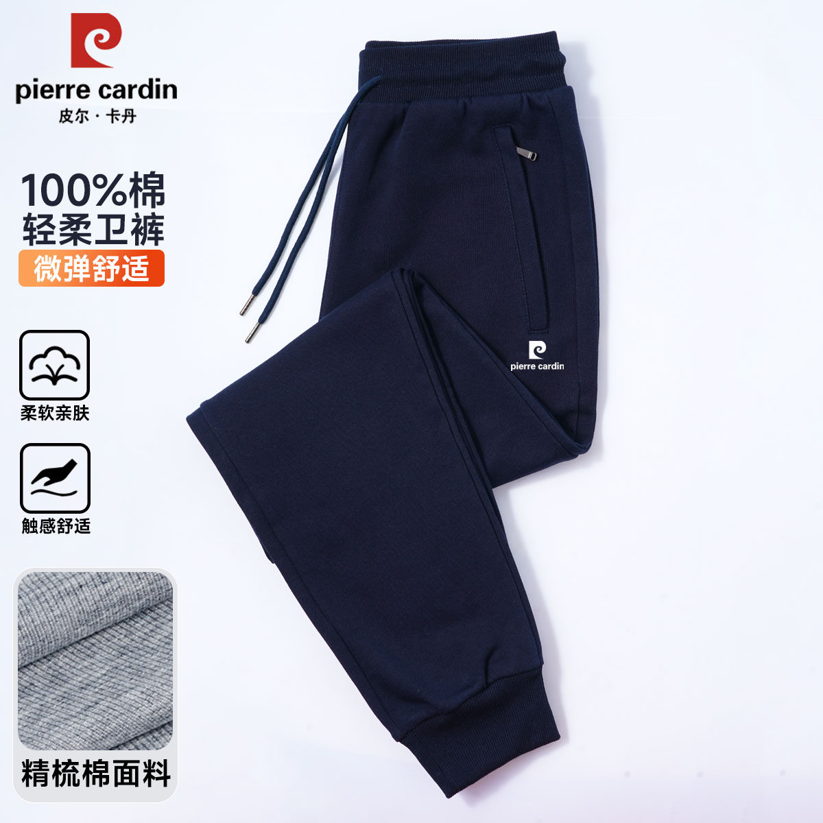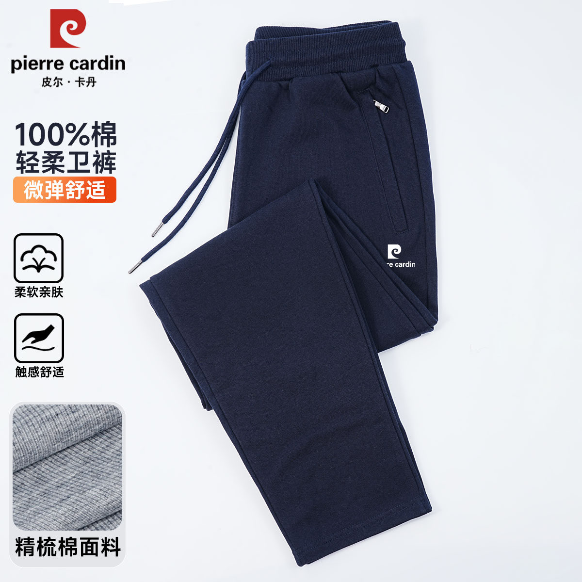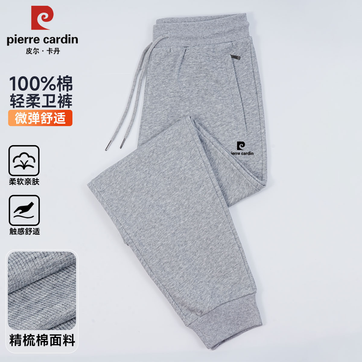 春季 高端休闲宽松直筒裤 男士 春秋款 纯棉浅灰卫裤 皮尔卡丹2026新款