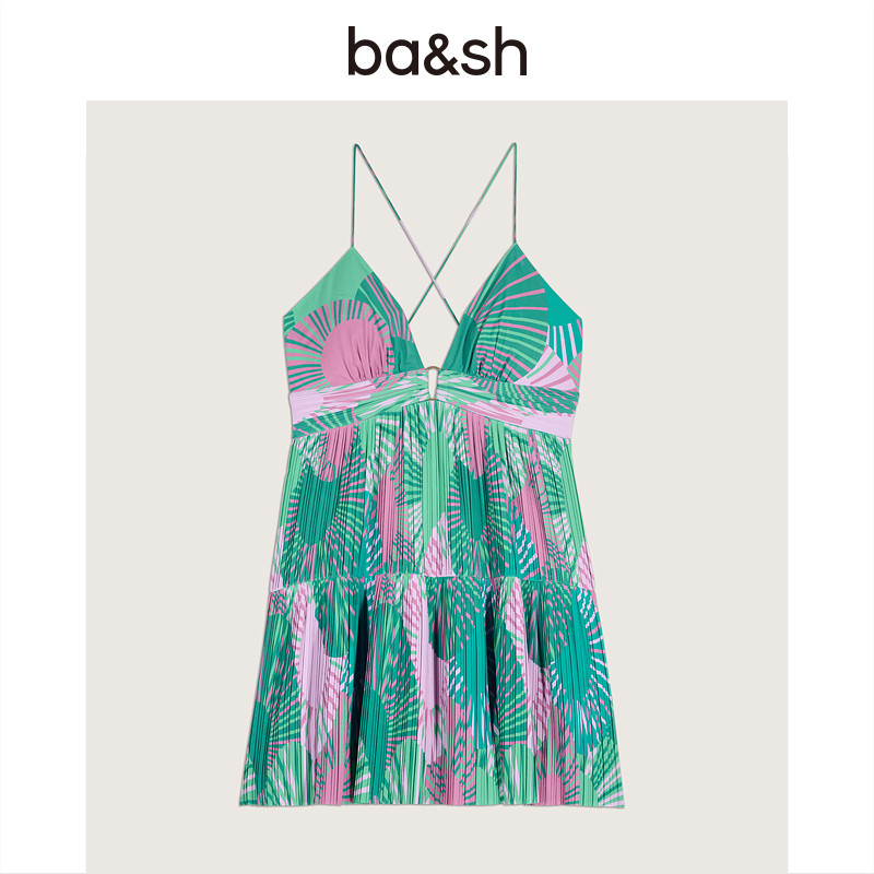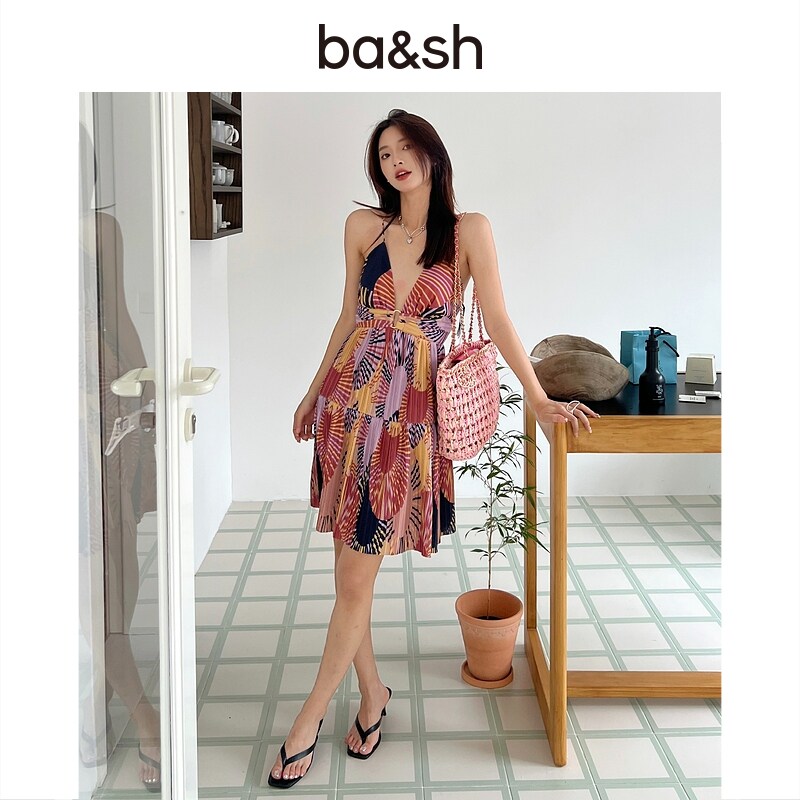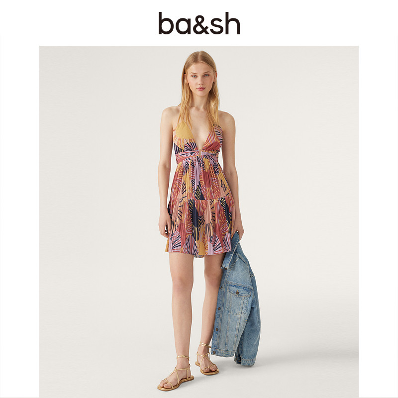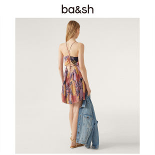 bash春季 海滩度假风裙子吊带露腰露背收腰休闲印花连衣裙1E23NADJ