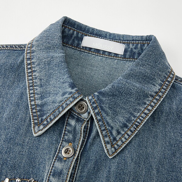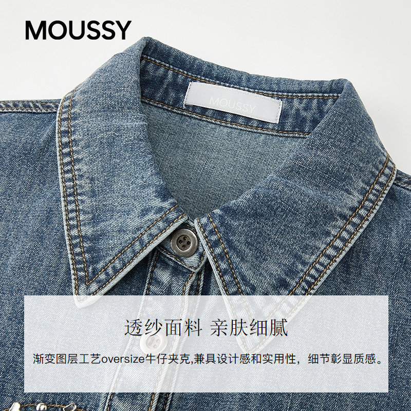 外套女028JSA10 MOUSSY 丹宁风波浪烫钻牛仔衬衫 新品 1006 2026春季