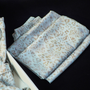 猫人真丝豹纹睡衣女带胸垫春秋新款 冰丝家居服送闺蜜礼盒 宽松长袖