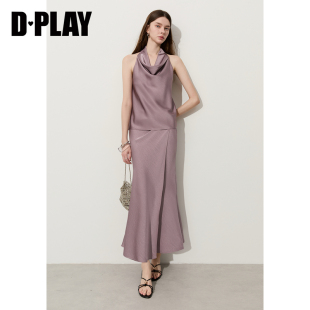 新款 DPLAY紫色吊带背心时尚 2026年春季 挂脖上衣雪纺衫 气质法式