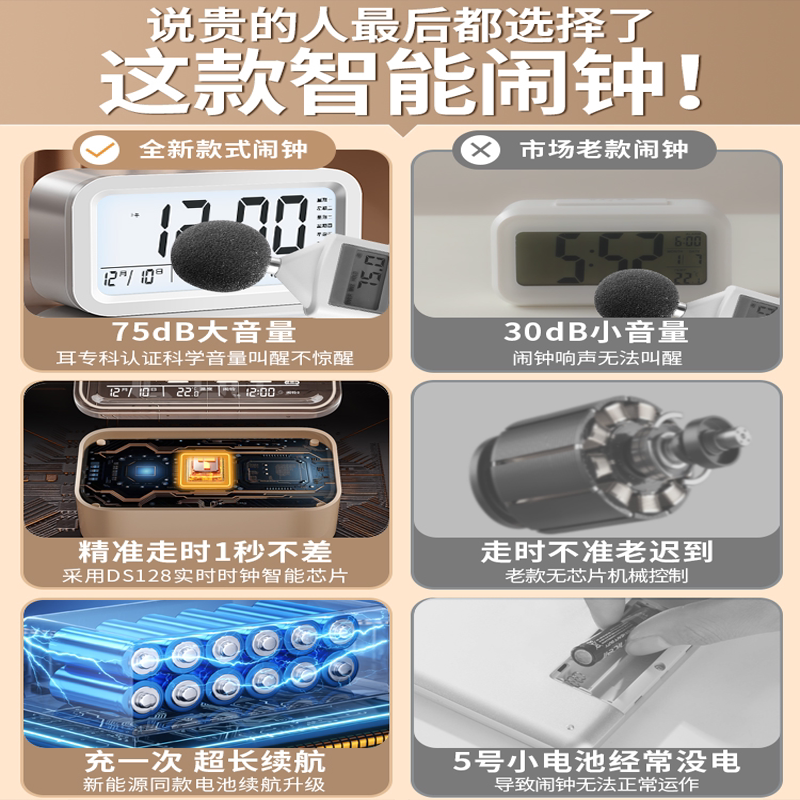 闹钟学生专用起床神器多功能智能电子时钟儿童钟表男女孩强力推荐