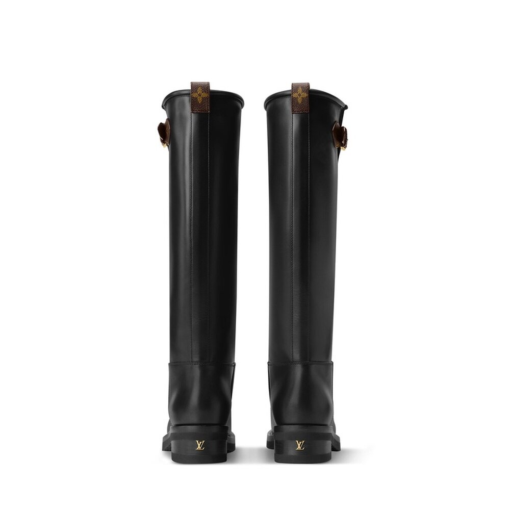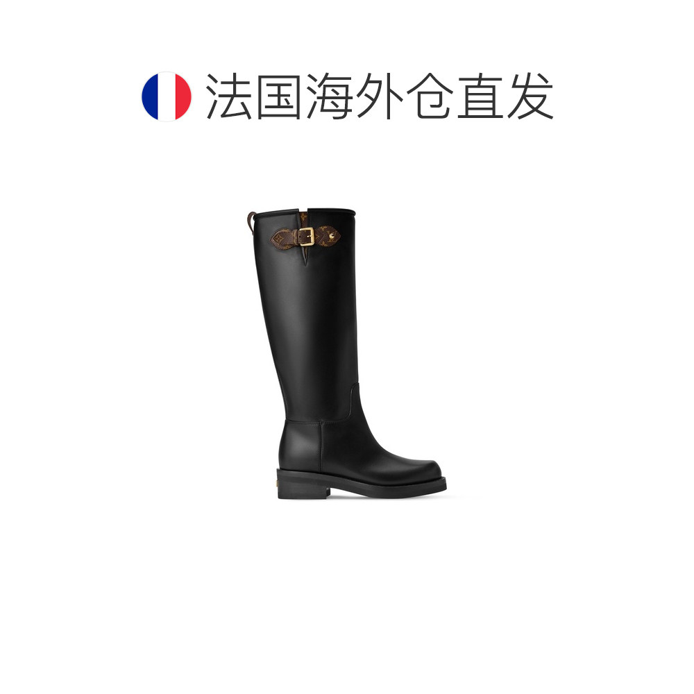 自营欧洲直邮LV路易威登 Biker女士黑色皮革金属搭扣高筒靴厚底鞋