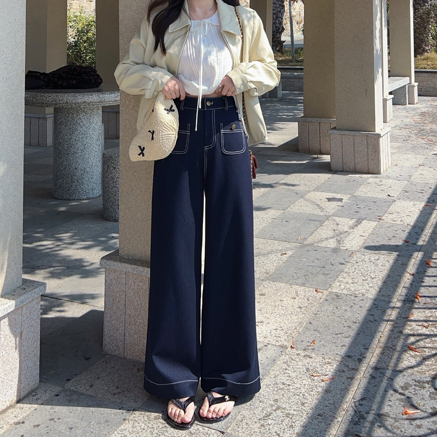 直筒阔腿显高瘦休闲裤 小小家 复古牛仔裤 竹节棉法式 小个子春新款