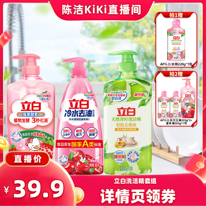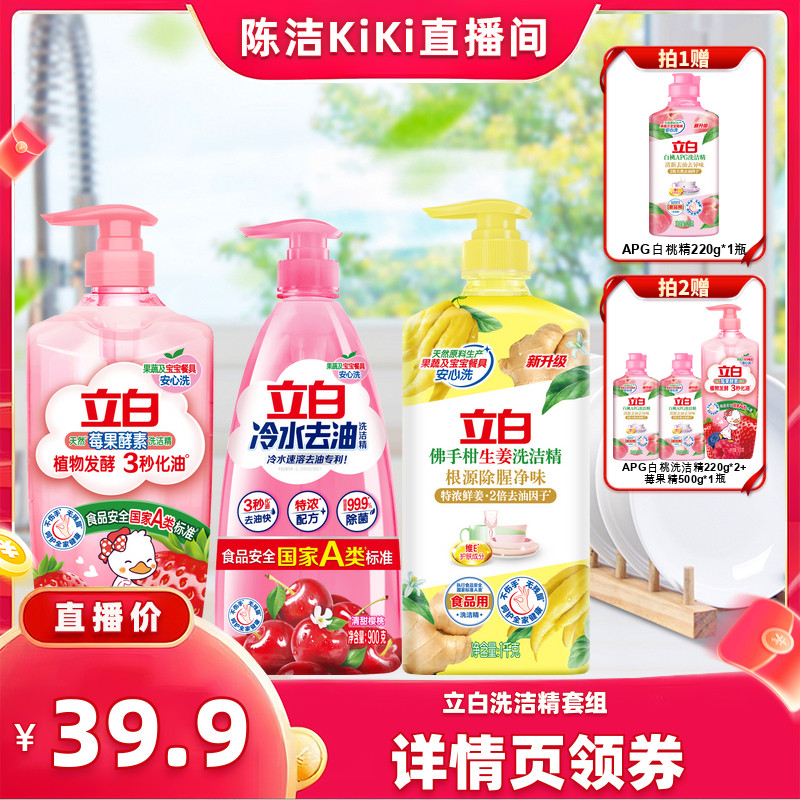 立白洗洁精家用白桃清新生姜去异味青柠去重油食品a类双瓶装
