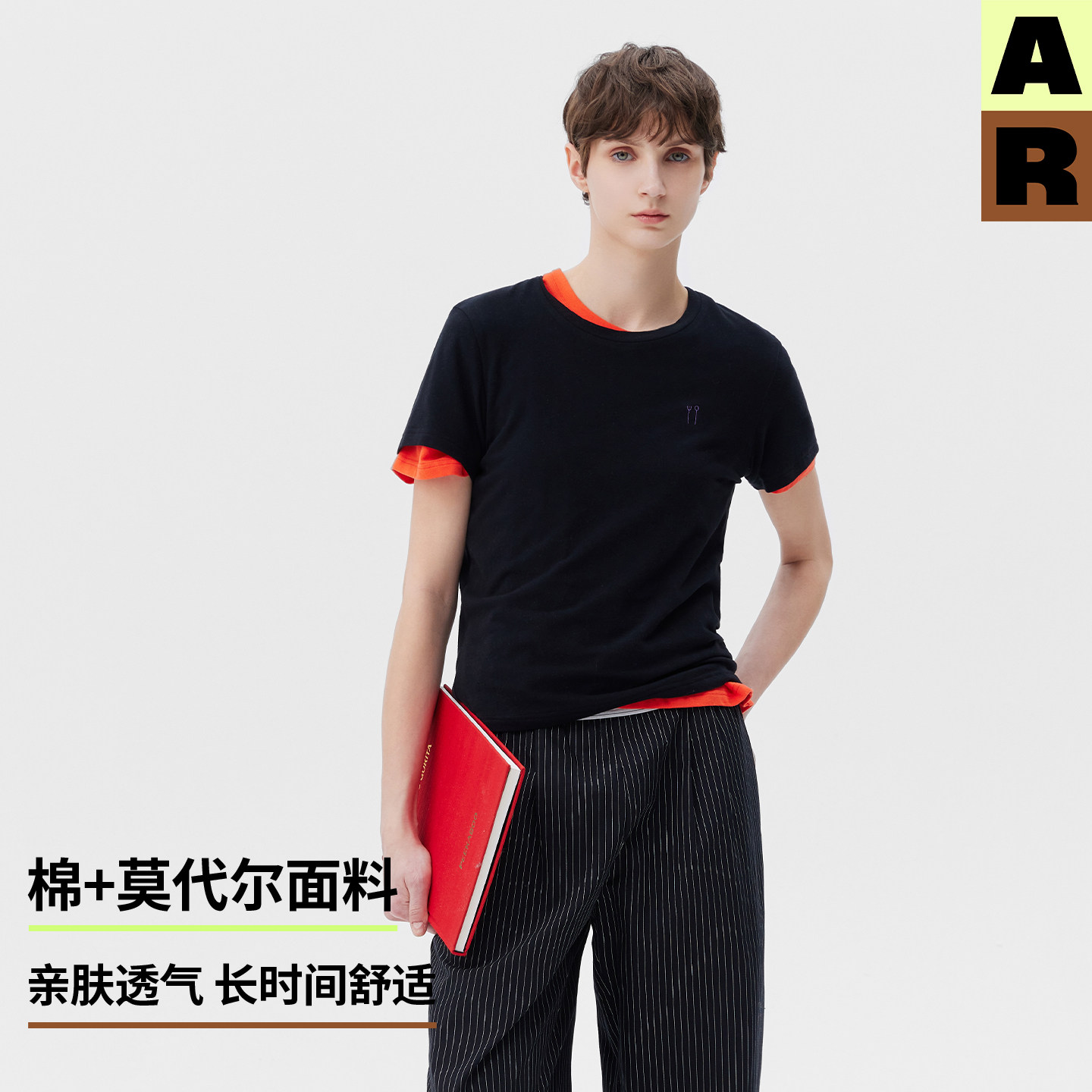 T恤宽松上衣女春夏 AR艺术家纯色棉莫代尔圆领短袖 doudou推荐