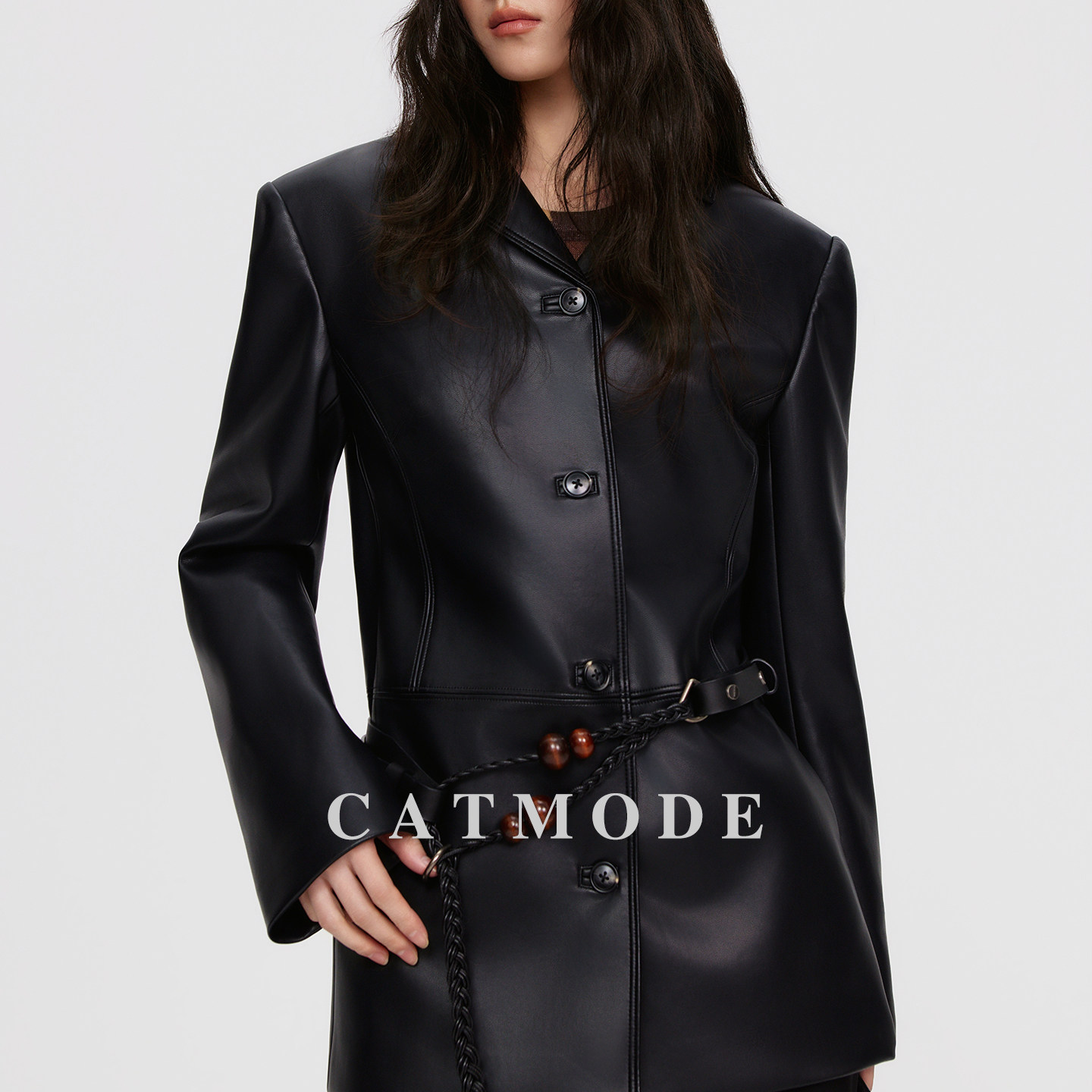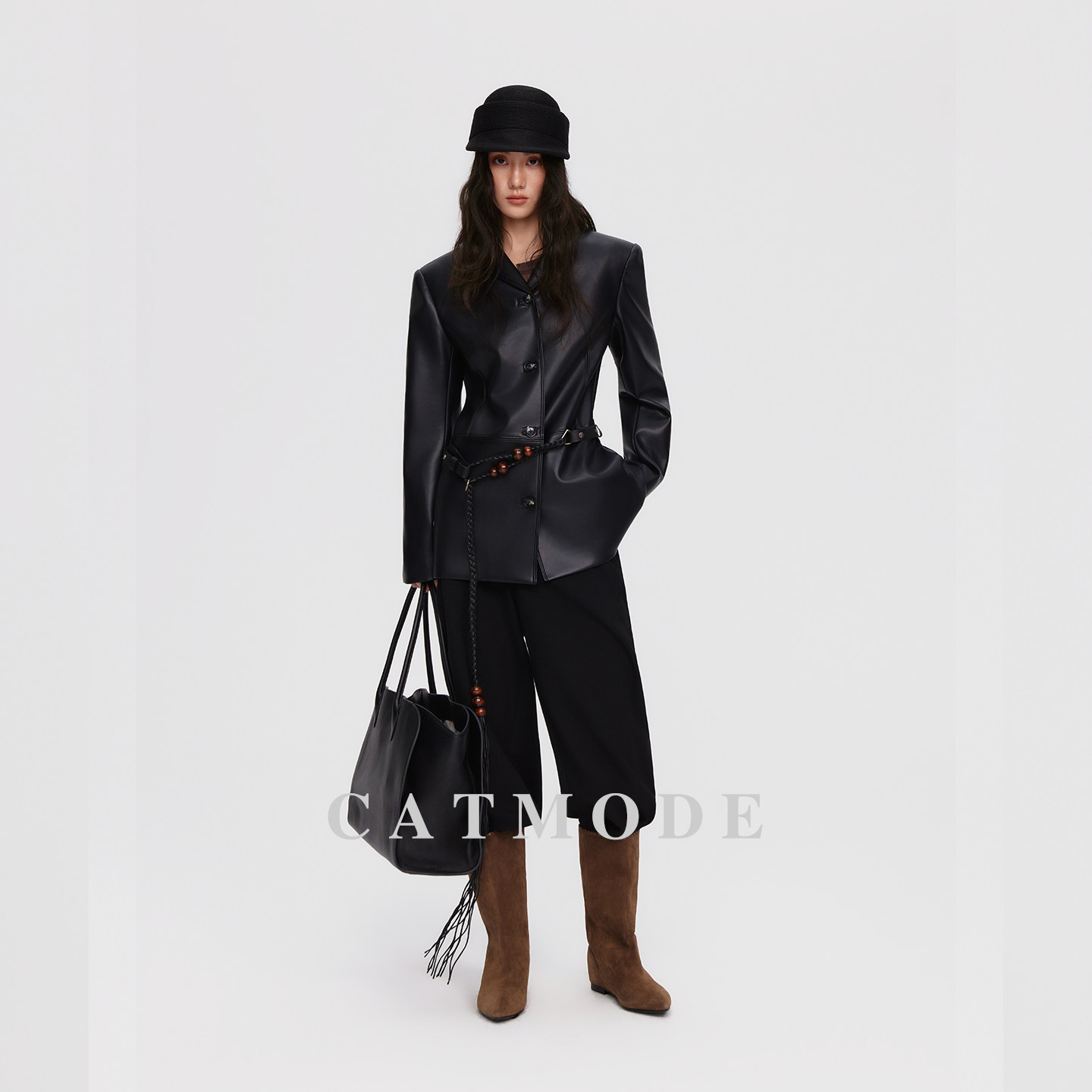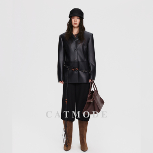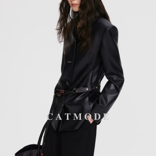 气质轻奢黑色女式 极简暗黑复古通勤皮衣短款 外套 LION&CAT2026